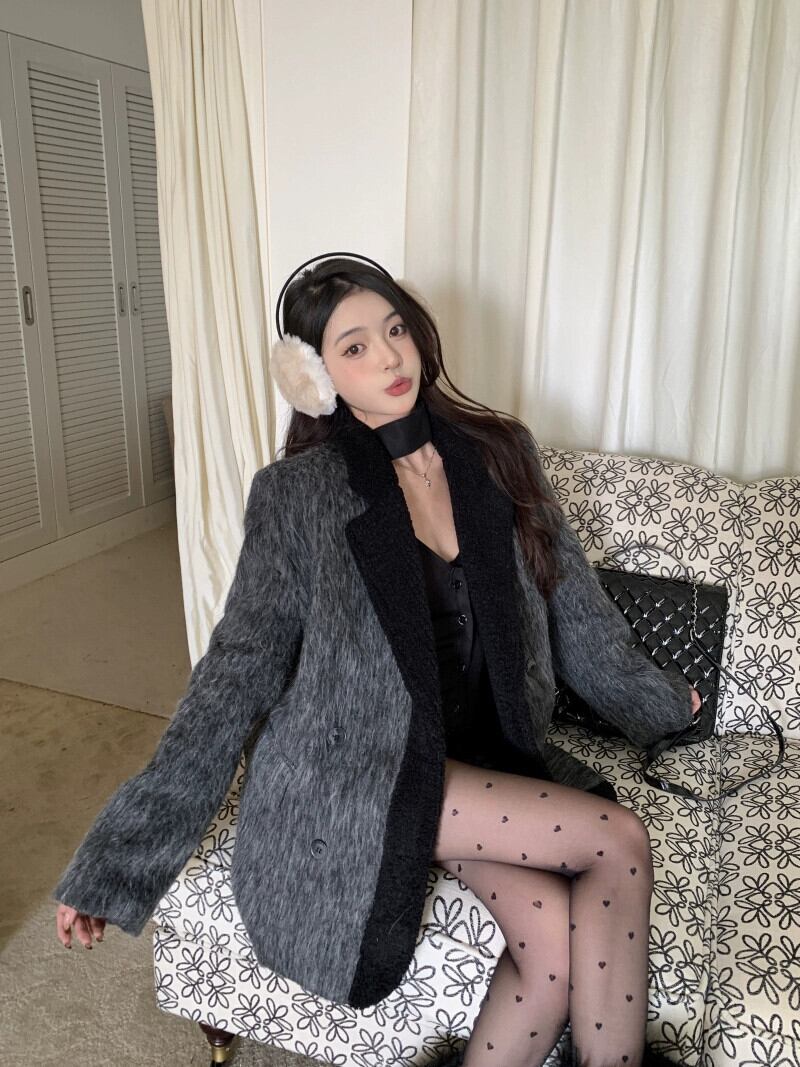 -終了コントラストカラースーツウールコートレディース2024年春の新しいレトロダブルブレスト肥厚ウールコート スプリング 春物 missk38465115926