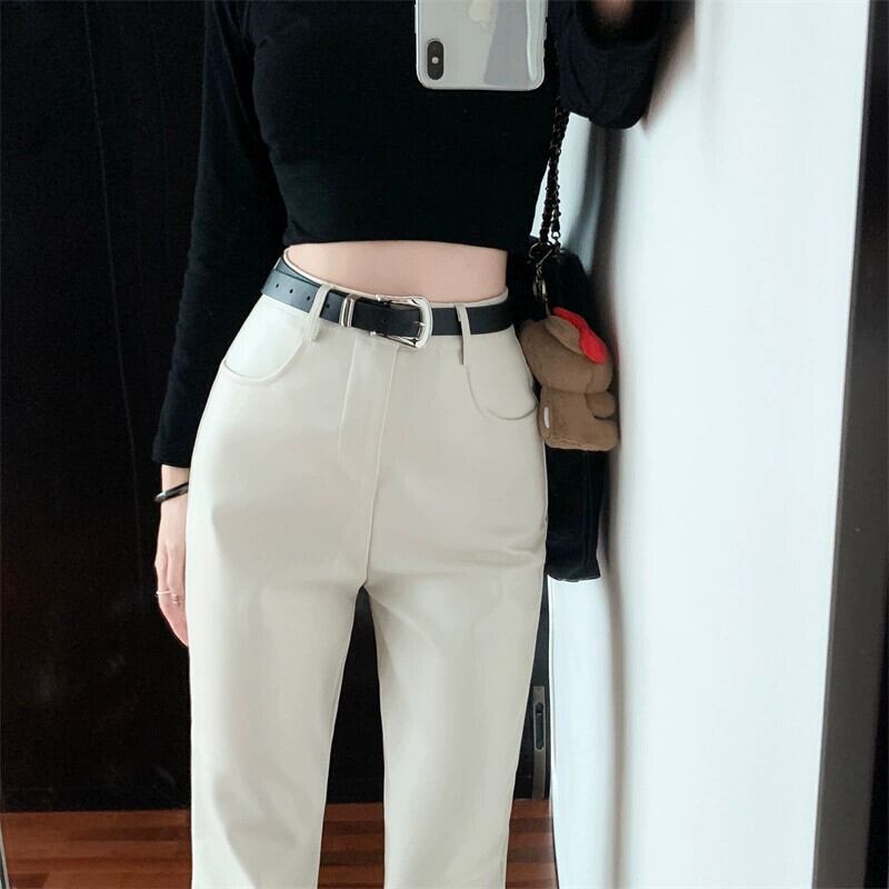ホットマイクロフレアカジュアルパンツ女性の春と秋のパンツ2024新しいメイラードPUレザーパンツスリミングハイウエストフロアレングスパンツ スプリング 春物 オータム 秋物 missk34701293330
