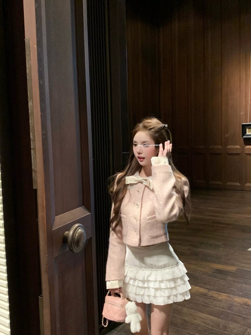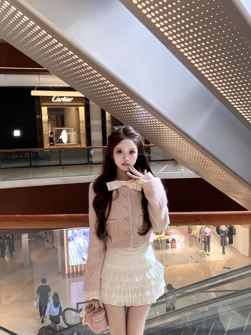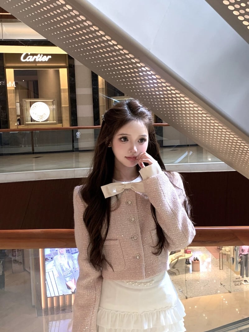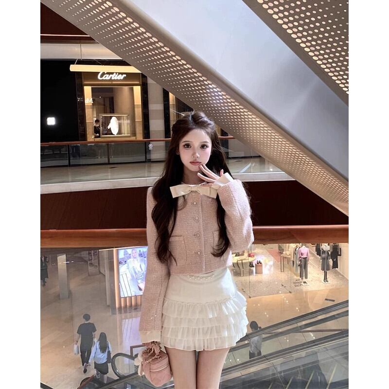 小さな香りの弓と年齢を軽減する美しいショートコートふわふわケーキ女性春と秋の 2024 新しいファッション 2 点セット リボン スプリング 春物 オータム 秋物 missk69195640089