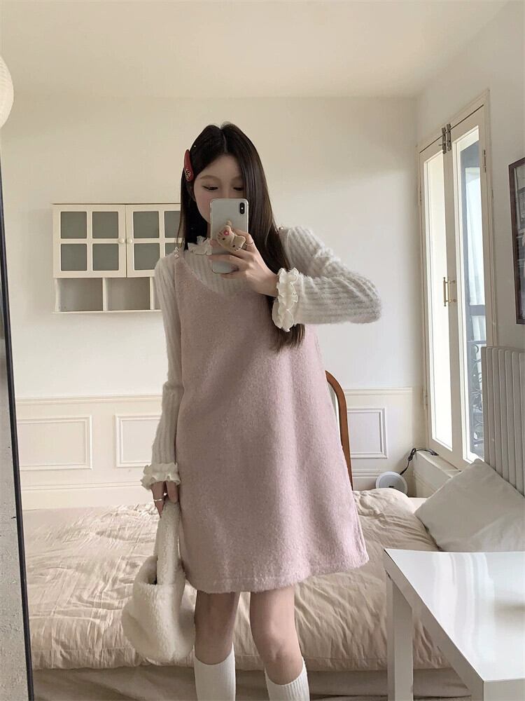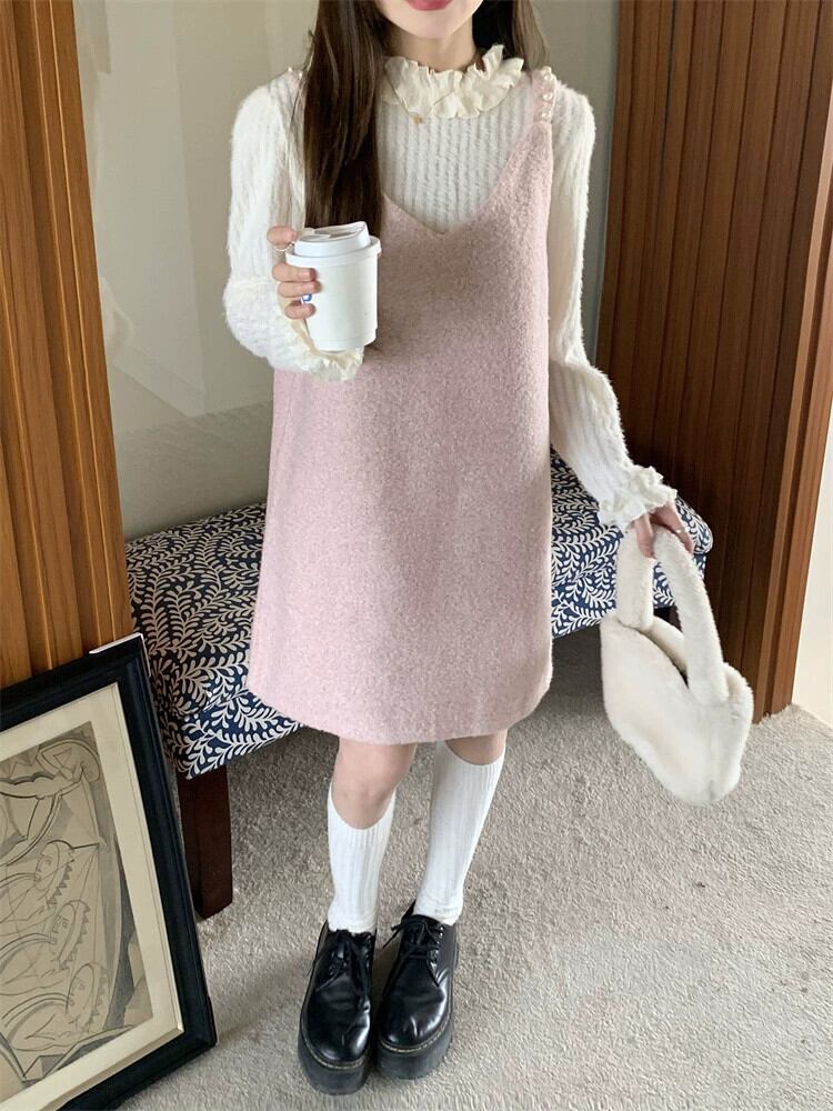 甘い胸のスーツの女性、春と秋の優しいスタイル、厚いウールのサスペンダードレス、菌エッジボトリングシャツ、2点セット 大人ガーリー スウィート キュート カジュアル スプリング 春物 オータム 秋物 missk86675048080