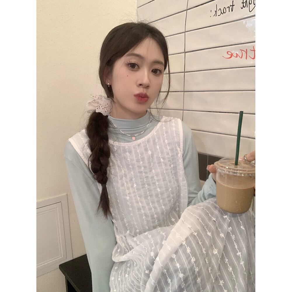 春の女性スーツ、優しい白のベストドレスとハーフタートルネックのボトムTシャツを重ねた2点セット ホワイト レッド スプリング 春物 missk15344705239