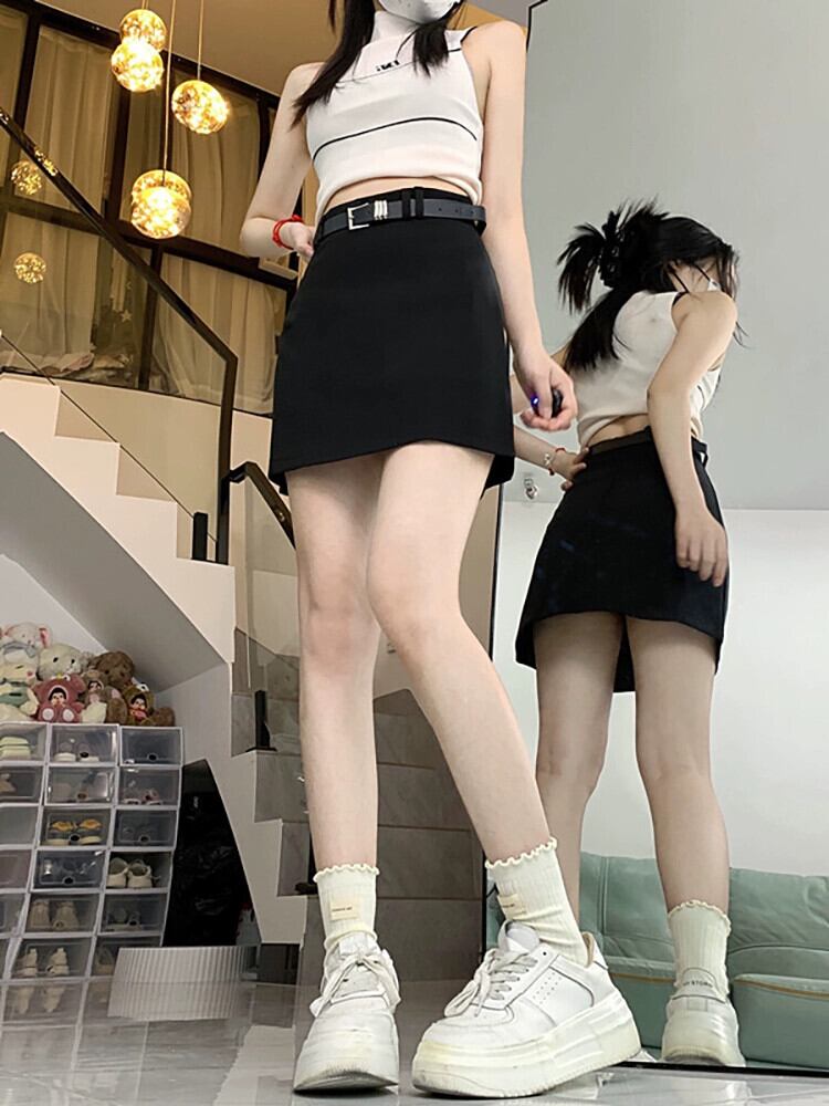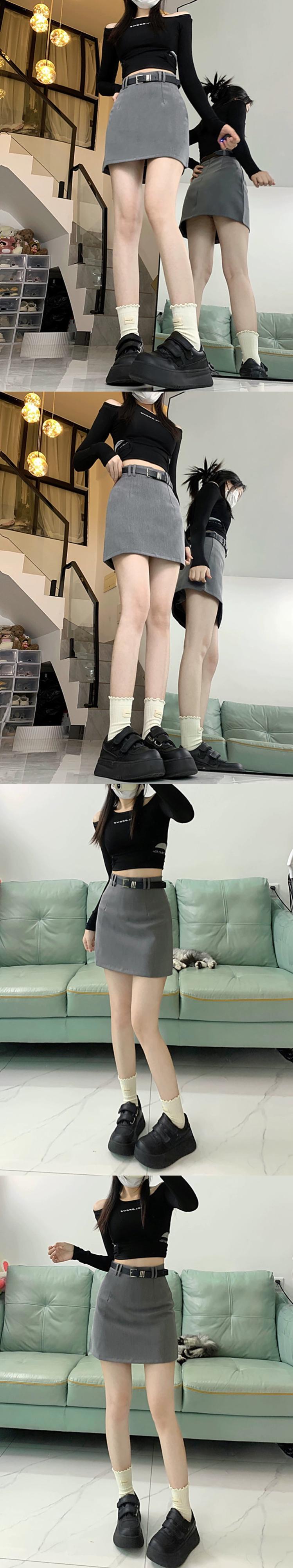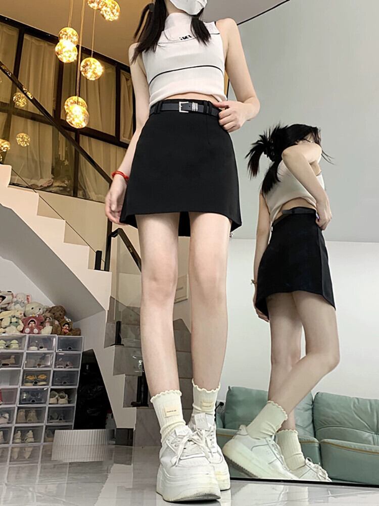 露出防止、痩身 A ライン スカート レディース、春の新作ファッション、ハイウエスト バッグ、ヒップ スカート、ショート スカート、無料ベルト トレンド ハイウェスト スプリング 春物 ハーネス Aライン missk95251647567