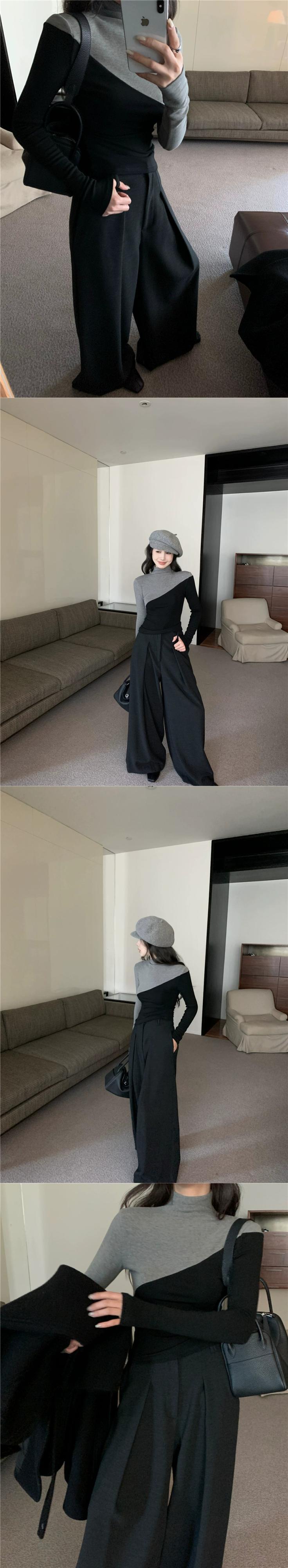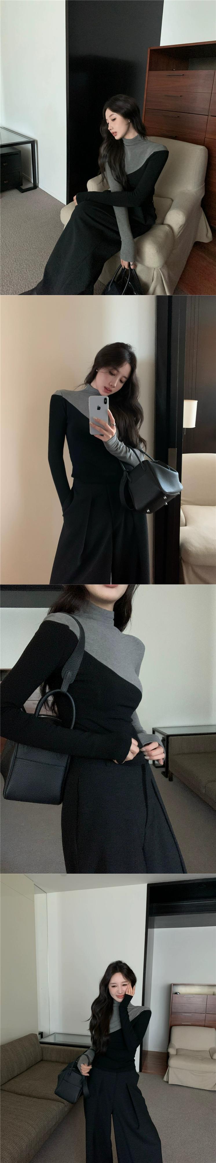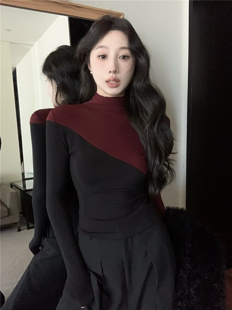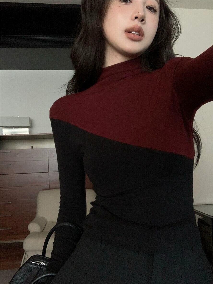 カラーブロックハーフタートルネック Tシャツ女性の 2024 春と秋の新デザイントップスリムフィットインナーレイヤリングシャツ スプリング 春物 オータム 秋物 missk97085187666