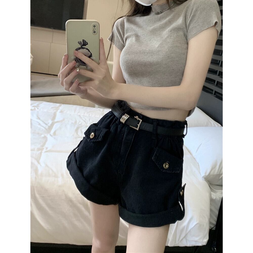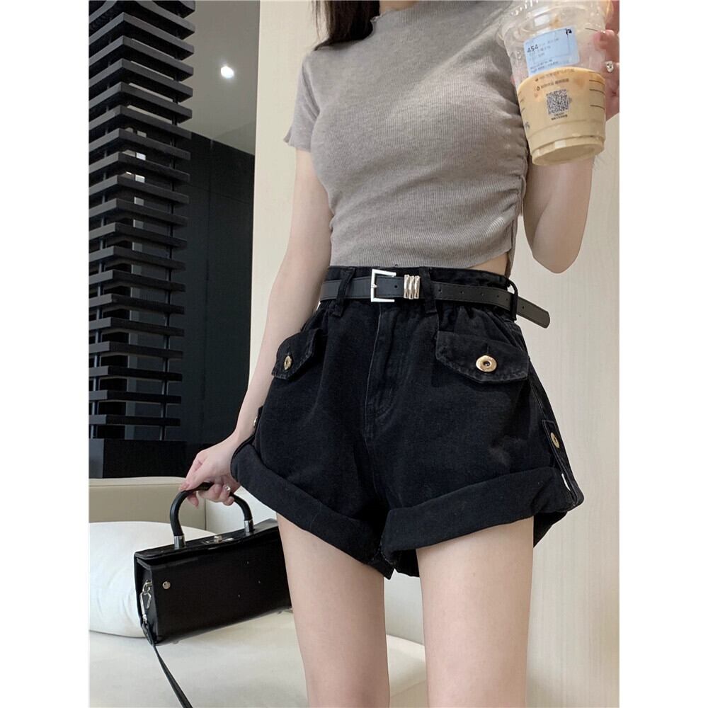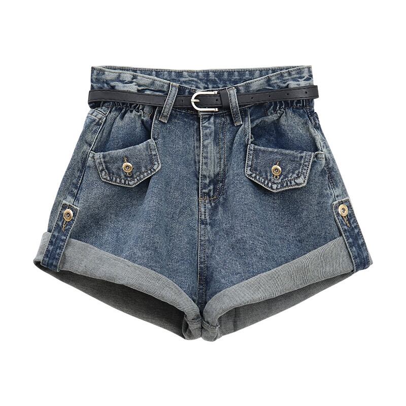 レトロなカールブルージーンズの女性、春のデザイン、ゆったりとしたワイドレッグパンツ、スリミングハイウエストAラインショーツ スプリング 春物 ブルマー missk7719759173
