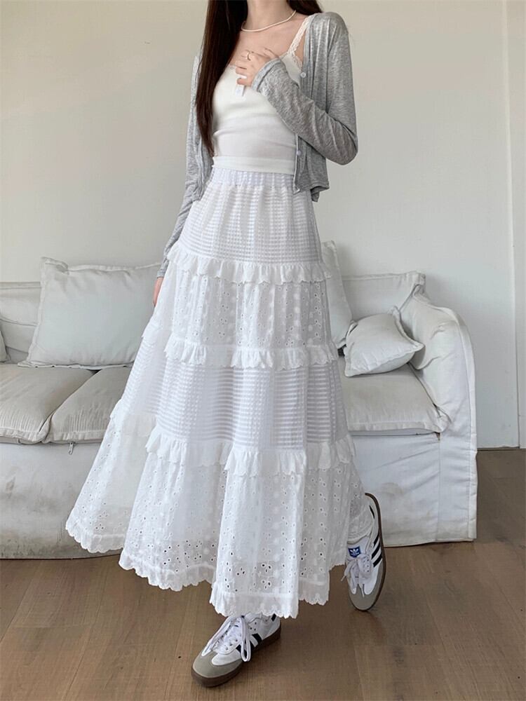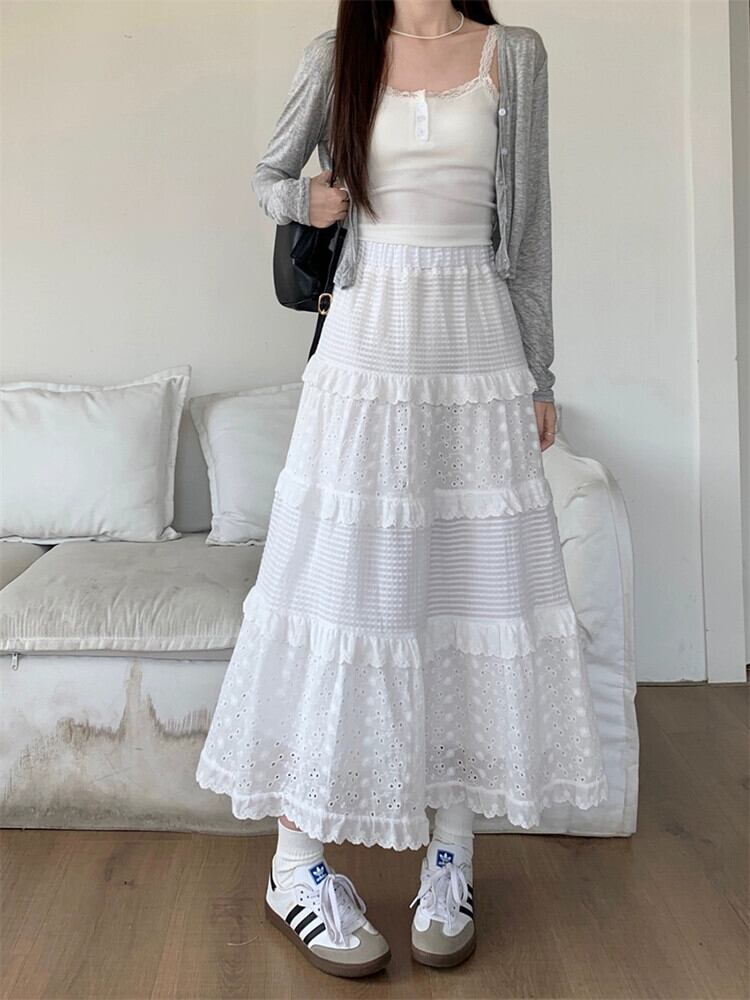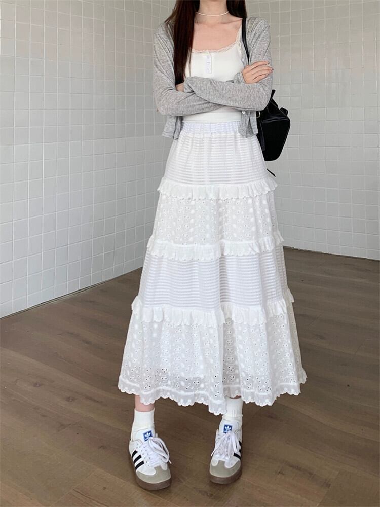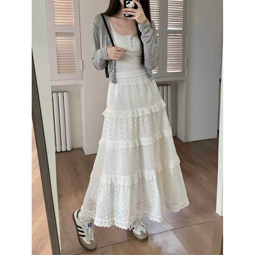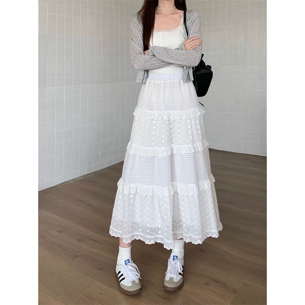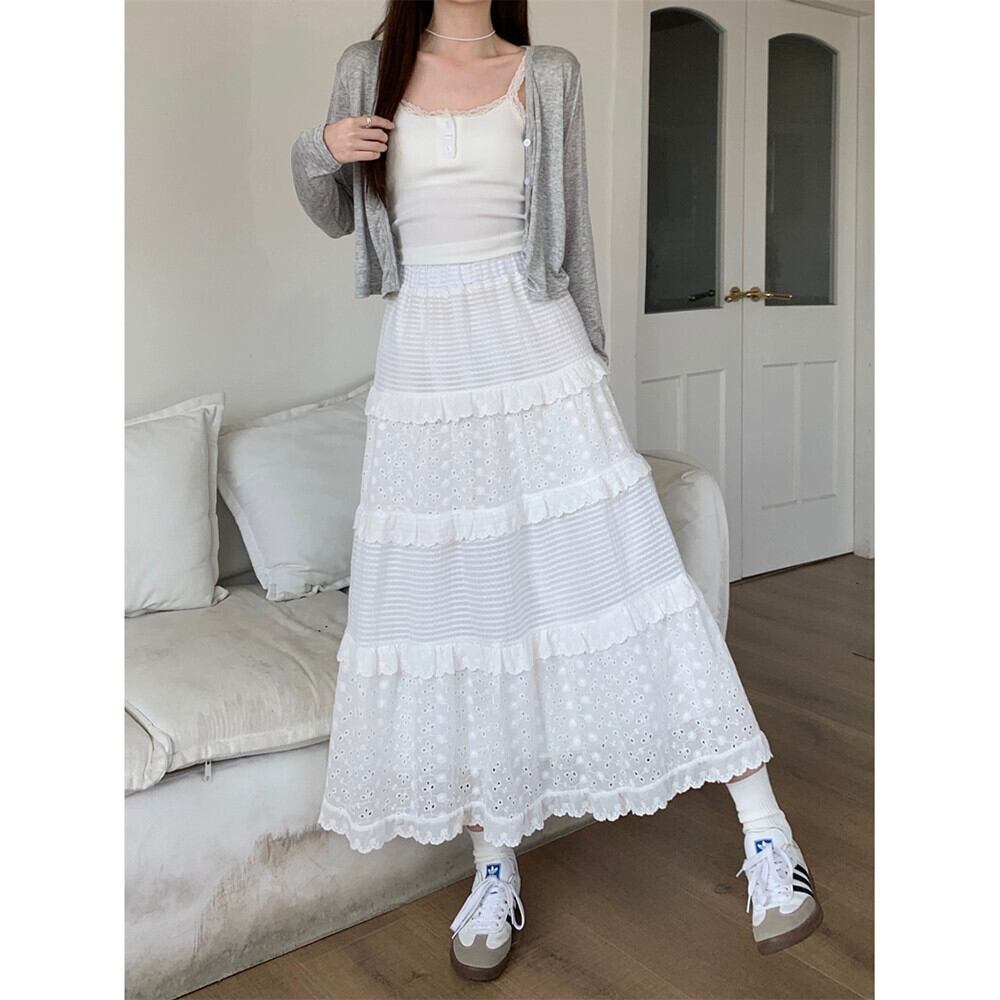 ミスココリのレース白スカート レディース春ハイウエストAラインスカート スイートケーキミモレ丈スカート ホワイト 大人ガーリー スウィート キュート カジュアル スプリング 春物 missk53519137236
