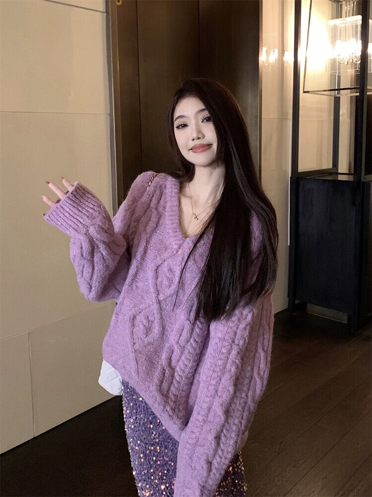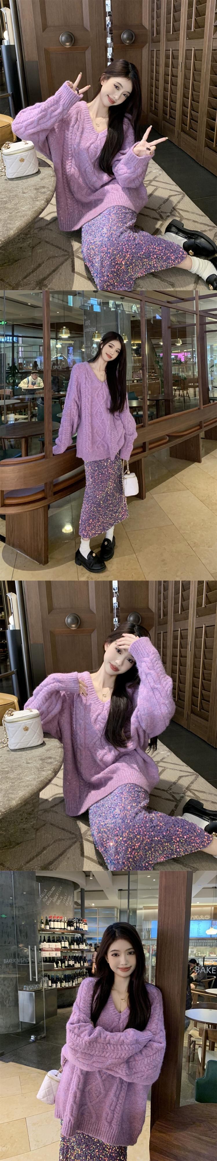 -エンドスーツレディース、春と秋のフレンチVネックツイストニットセーター、ハイウエストスパンコールスカート、ファッショナブルな2点セット スプリング 春物 オータム 秋物 missk18498891801