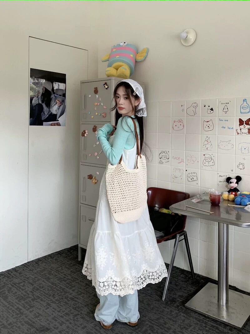 ミスココリのフレンチレースサスペンダードレスレディース春スカート海辺バカンス優しいスタイルレイヤードロングスカート レッド スプリング 春物 missk75341111908