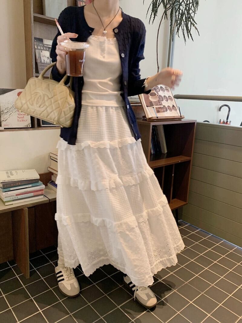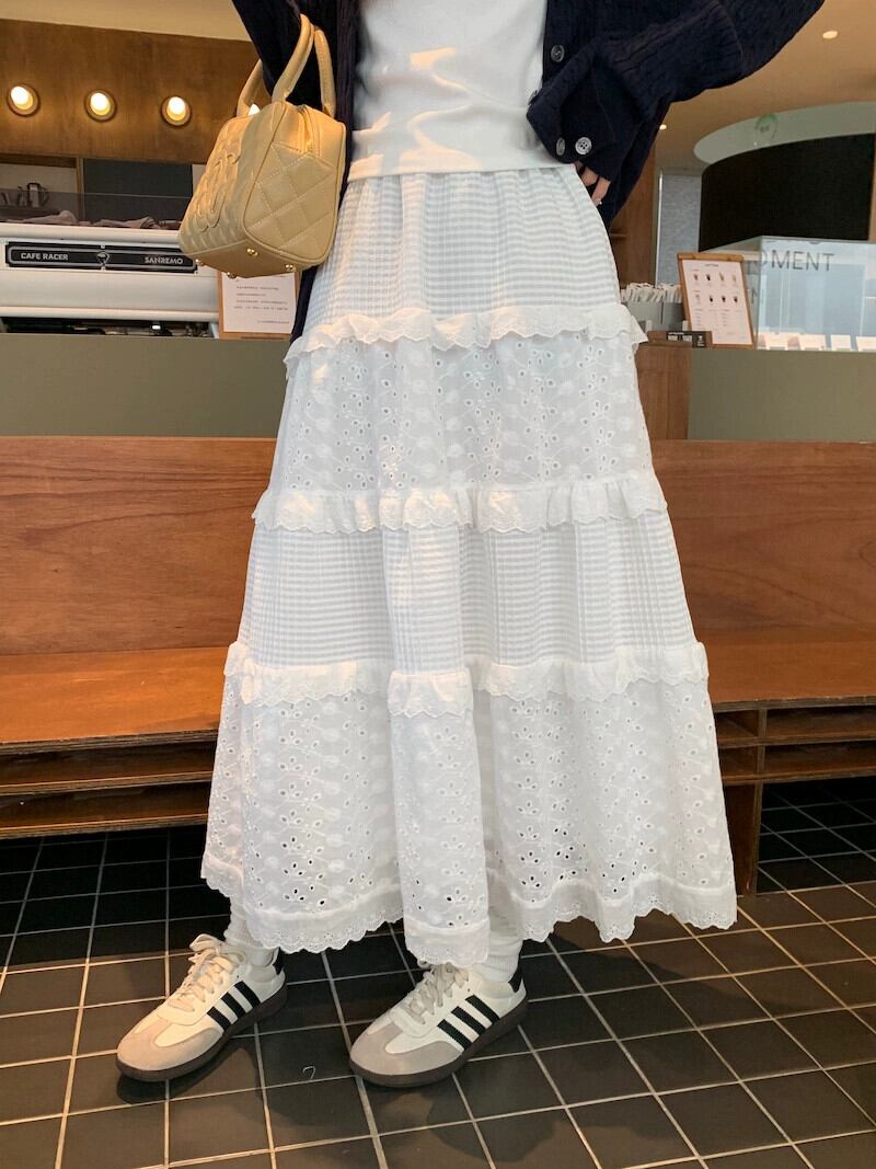 甘い白いレースのスカートの女性、春のフレンチホワイトスカート、スリミングハイウエストケーキスカート、ミドルレングスのAラインスカート ハイウェスト 大人ガーリー スウィート キュート カジュアル スプリング 春物 missk1506875672