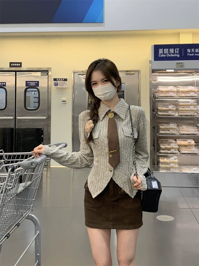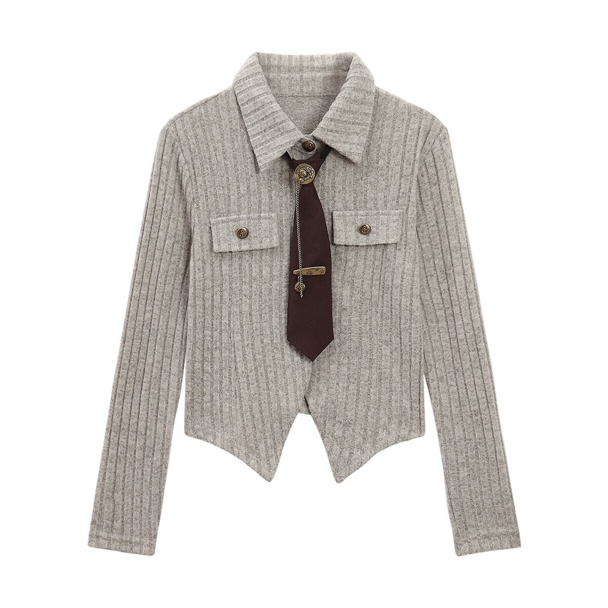 フレンチ不規則な長袖ニットセーターの女性の春と秋 2024 スリムフィットラペルシックなトップ ロング スプリング 春物 オータム 秋物 missk24389052167