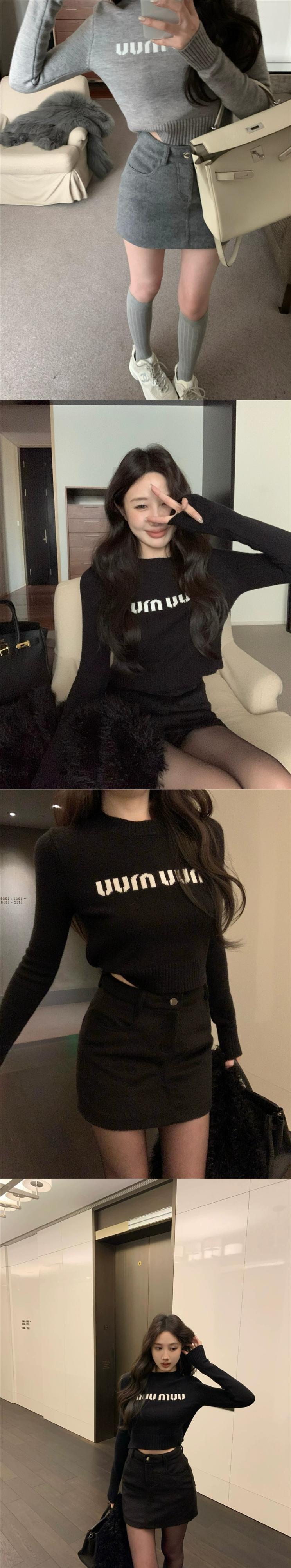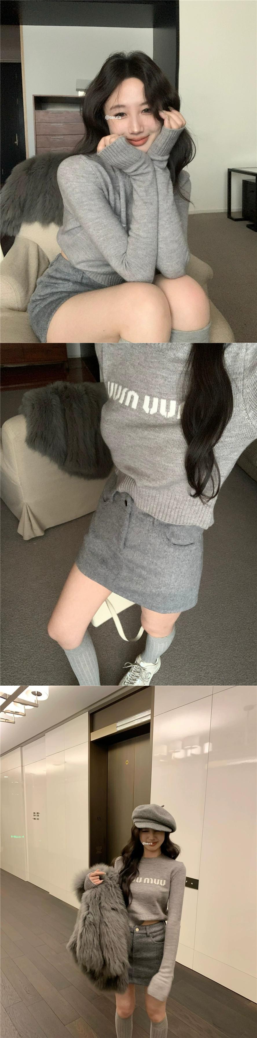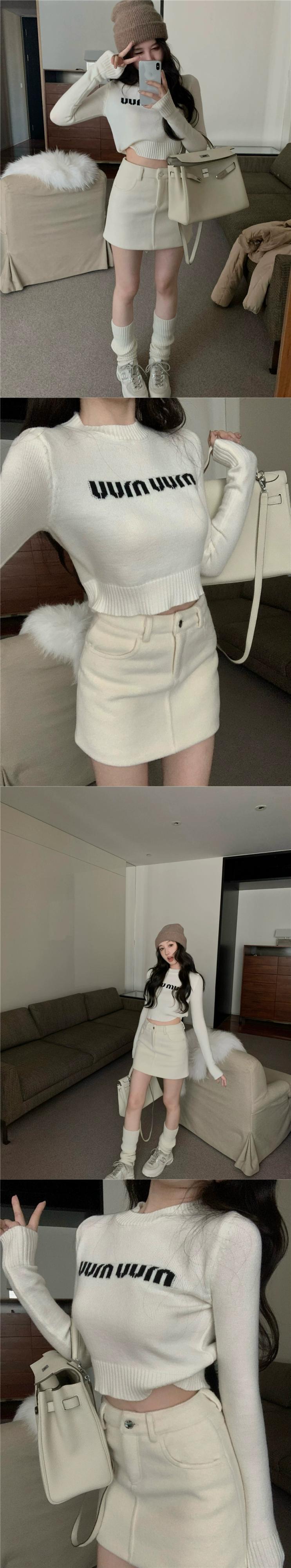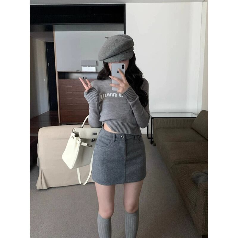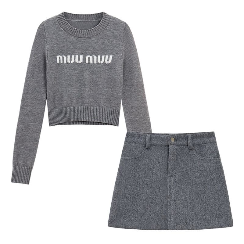 ホットファッションスーツの女性の春の小文字ショートニットセーターウールヒップスカート2点セット スプリング 春物 missk23019043995