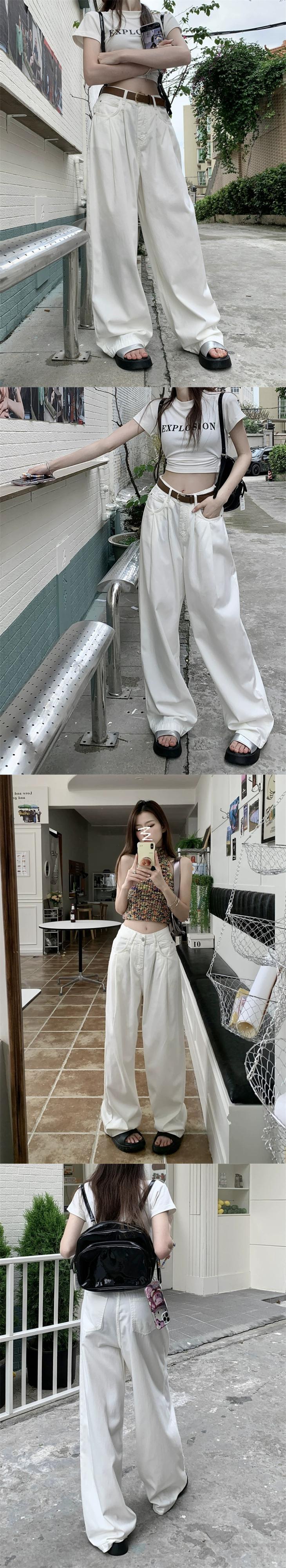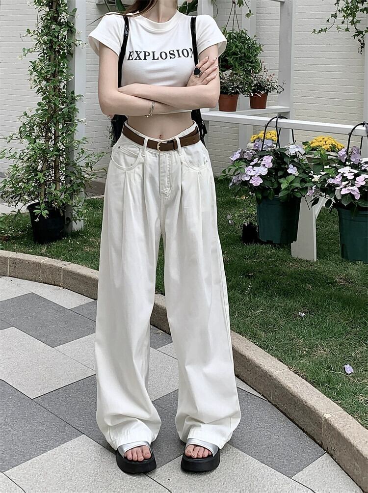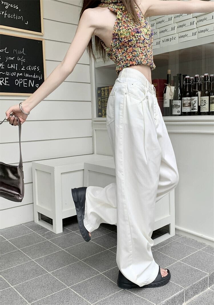 ホワイト ジーンズ レディース 2024 春の新しいスタイルのハイウエスト、スリムでドレープ、ルーズ ワイドレッグ パンツ、ストレート フロアレングス パンツ スプリング 春物 missk53672475665