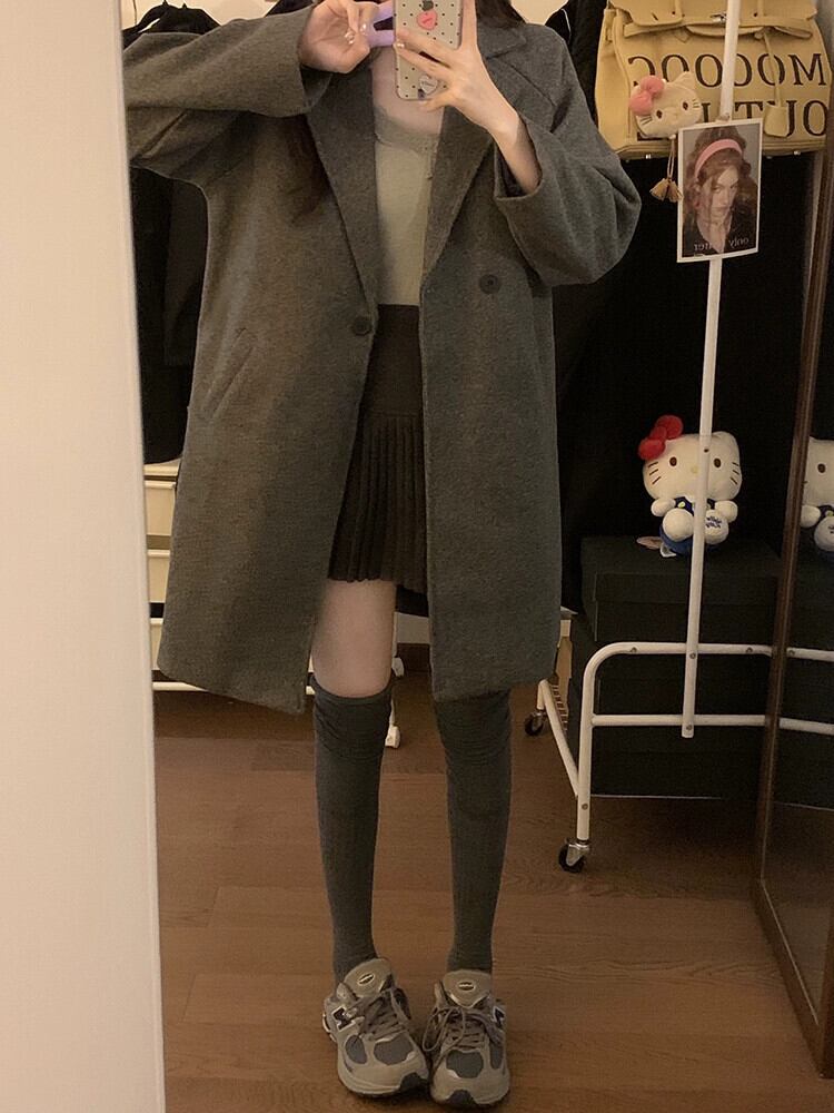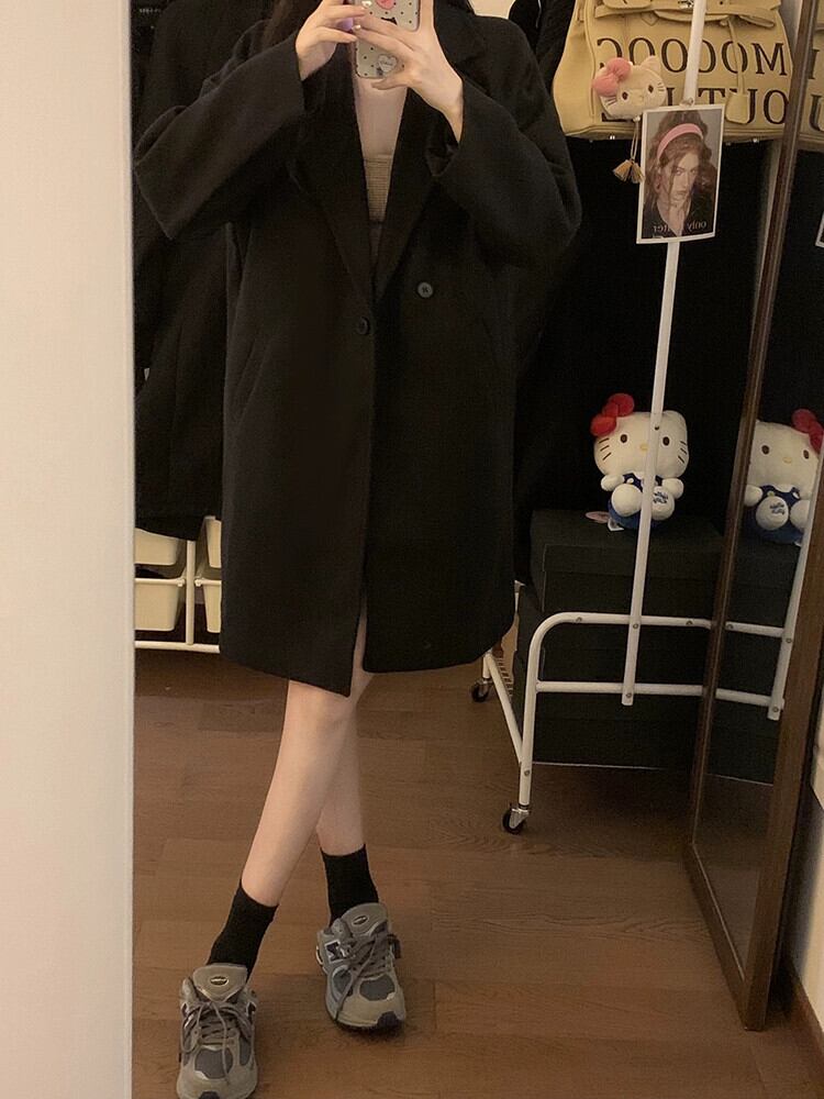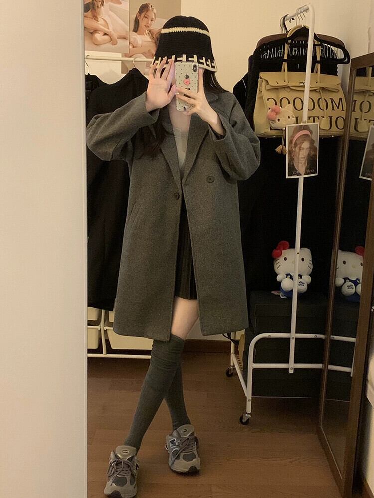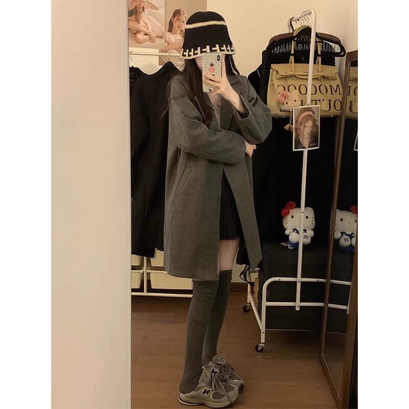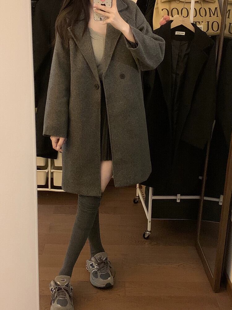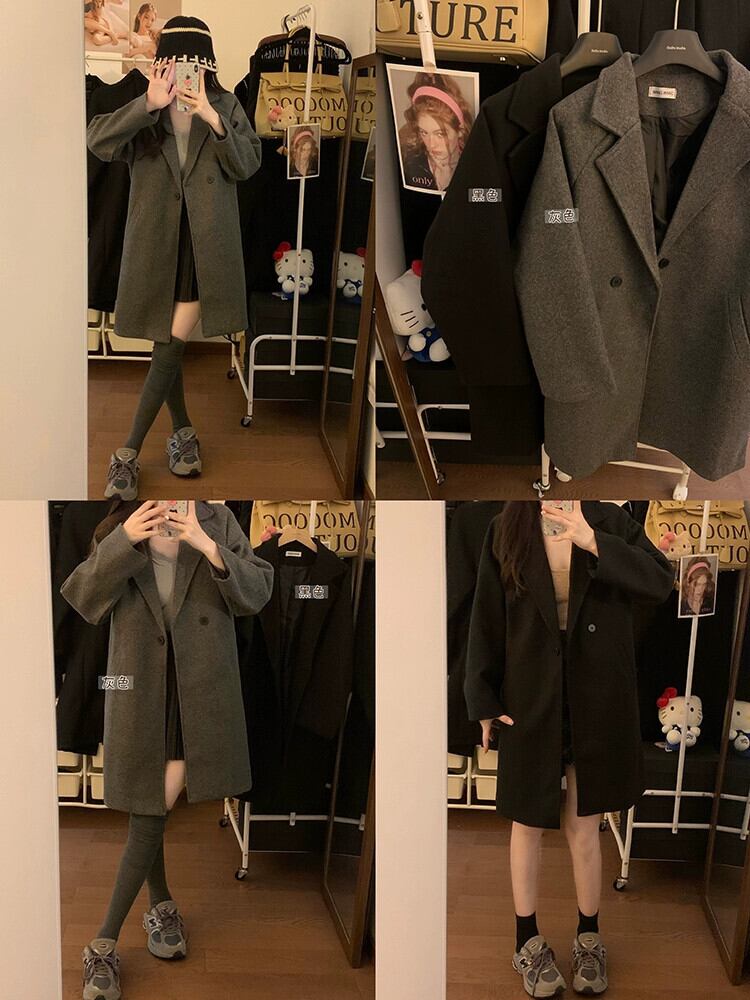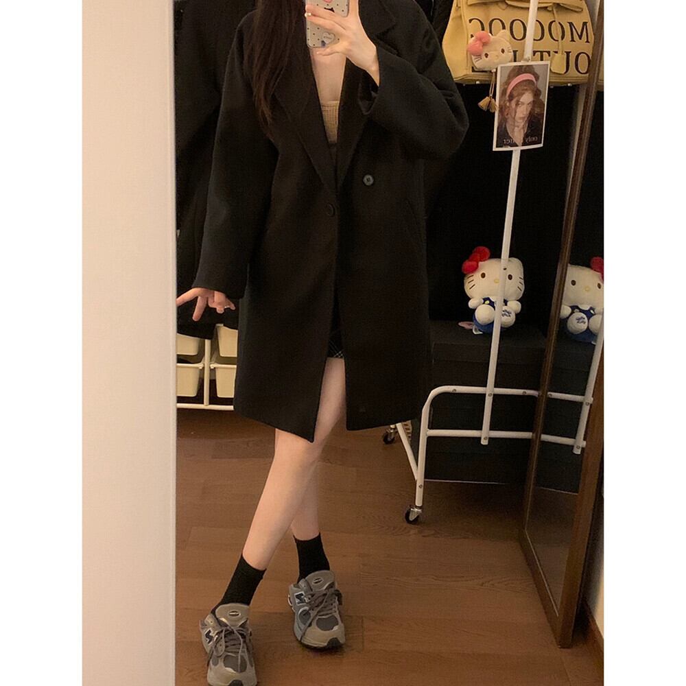 クールな高級ウールコート女性の 2024 年春の新作ルーズミドル丈スーツカラーウールコート スプリング 春物 missk58510113663