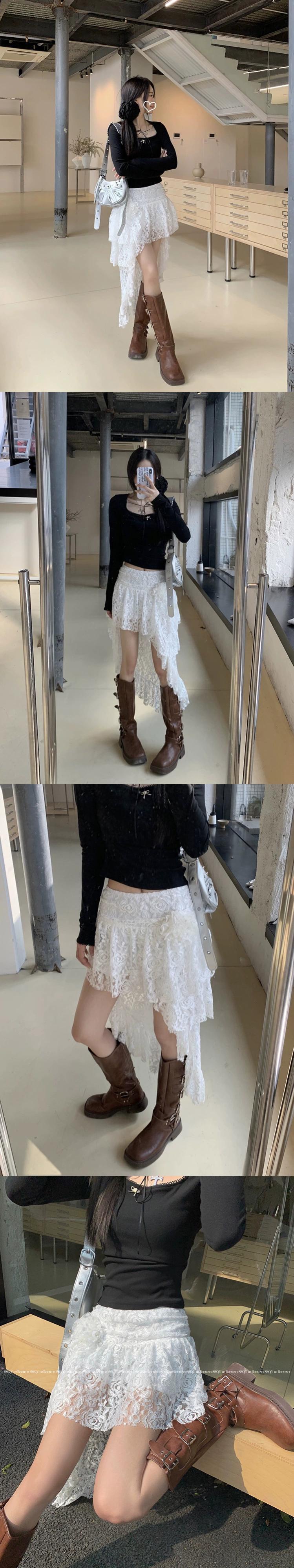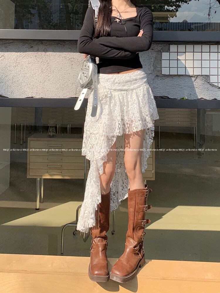 Miss Cocoli イレギュラーレーススカート レディース 春 ホワイト ケーキスカート デザイン ハイウエスト ミモレ丈スカート ハイウェスト スプリング 春物 missk16967325355