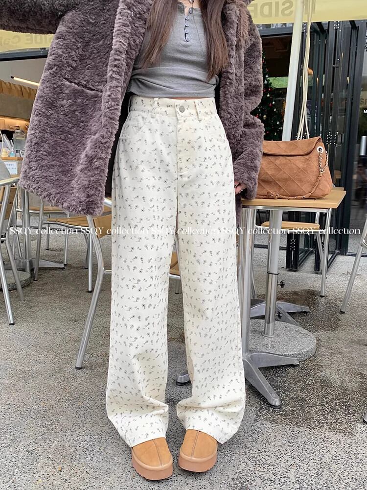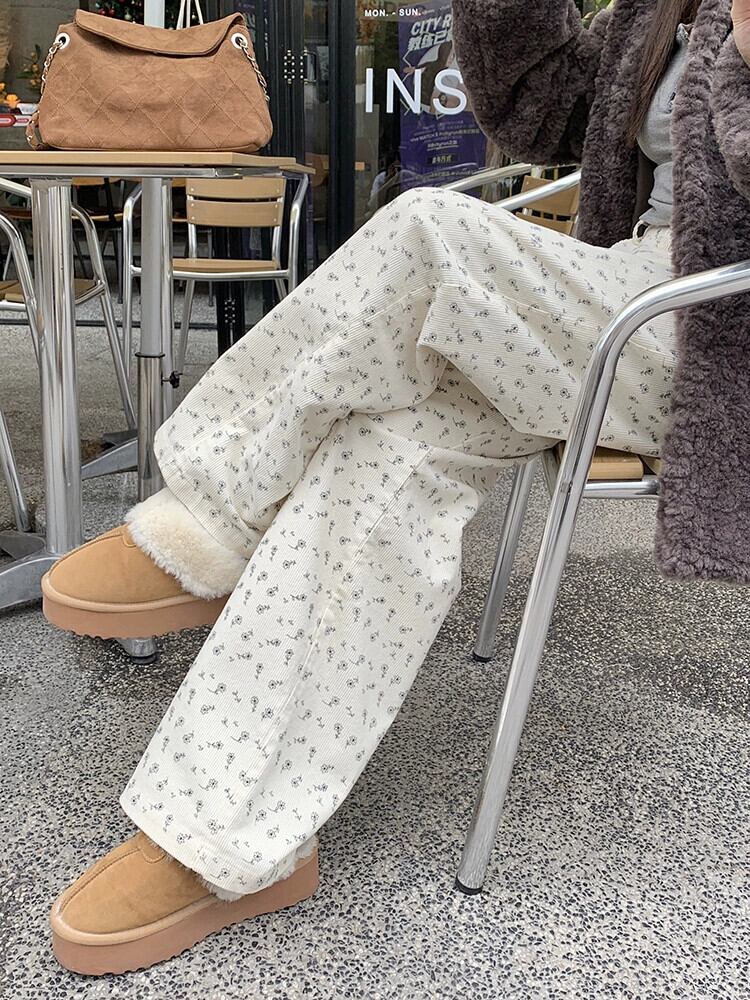コーデュロイ花柄カジュアルパンツとベルベットの厚みのある女性の春秋バージョン 2024 新しいハイウエストスリムワイドレッグロングパンツ スプリング 春物 オータム 秋物 missk4928117622