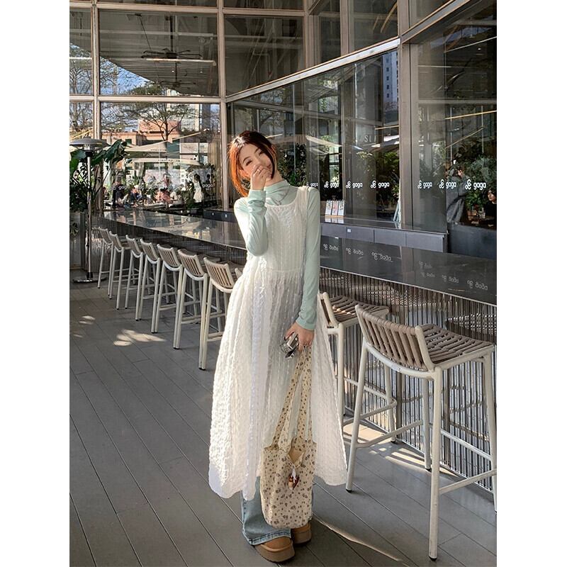 Miss Cocoliの白いレースのドレスの女性の春のレイヤード気質レースアップリバーシブルベストミドル丈スカート ホワイト レッド スプリング 春物 missk2946612394