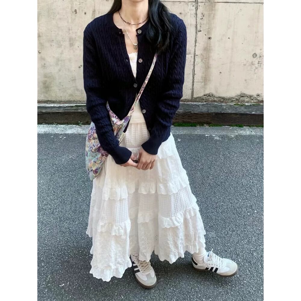 優しい風スーツ女性春レトロツイストニットカーディガンレースキャミソールケーキスカート 3 点セット スプリング 春物 missk88996691425