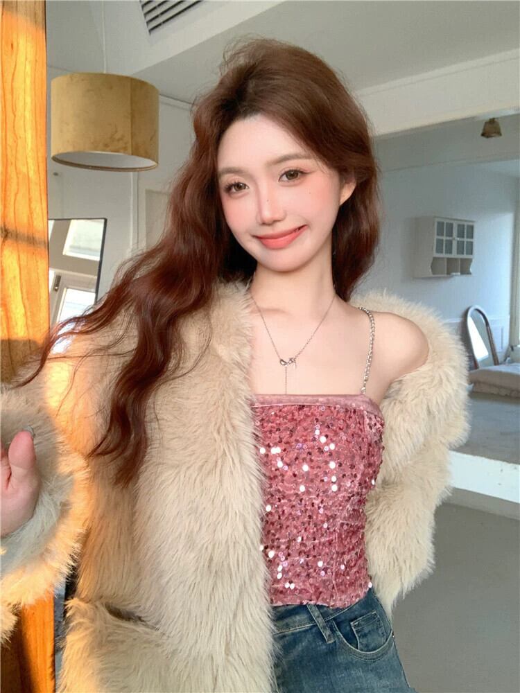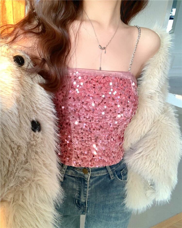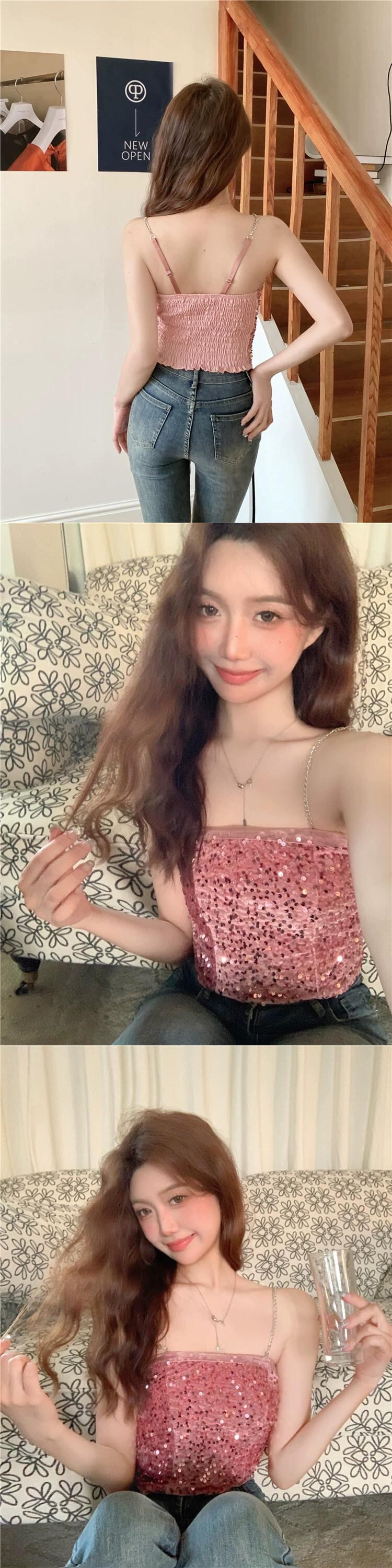 ホットセクシーなスパンコールキャミソール女性の春と秋 2024 新しい純粋な欲望デザインスリム痩身底トップ スプリング 春物 オータム 秋物 ピュア missk8818956344