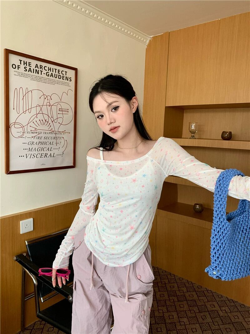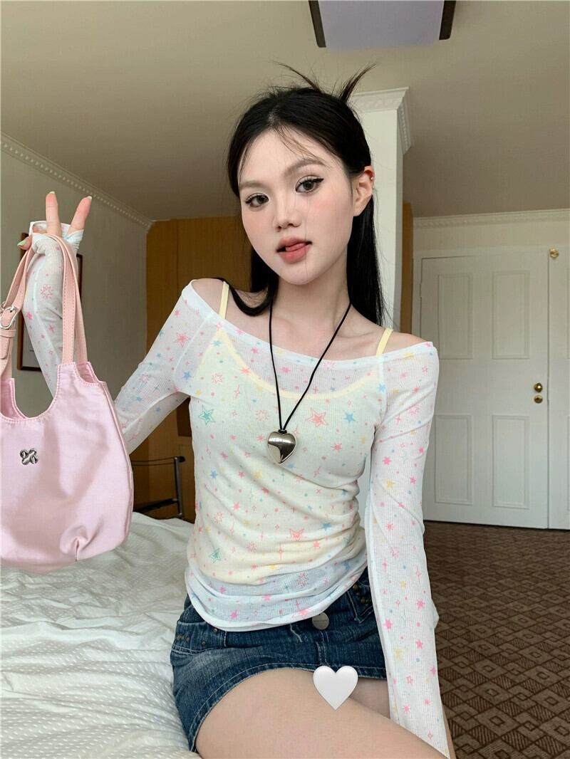色:ホワイトサスペンダー,明るい黄色のスリング,スターTシャツ