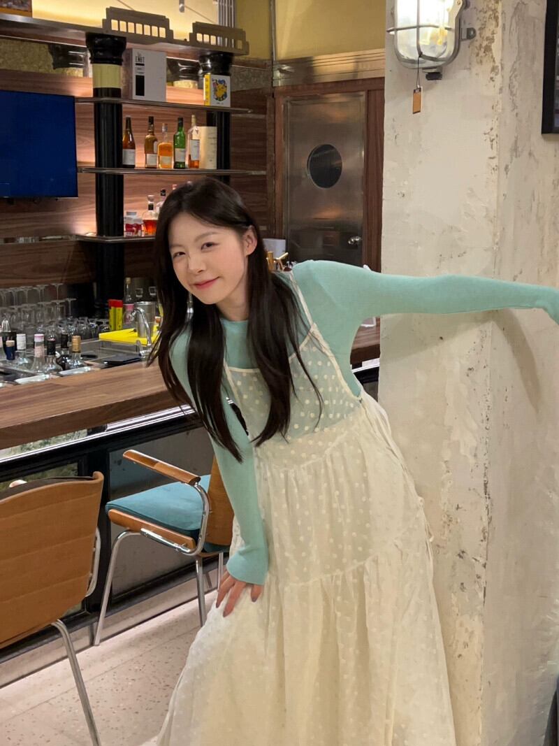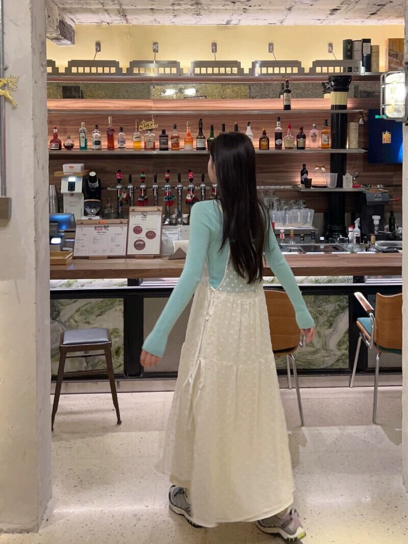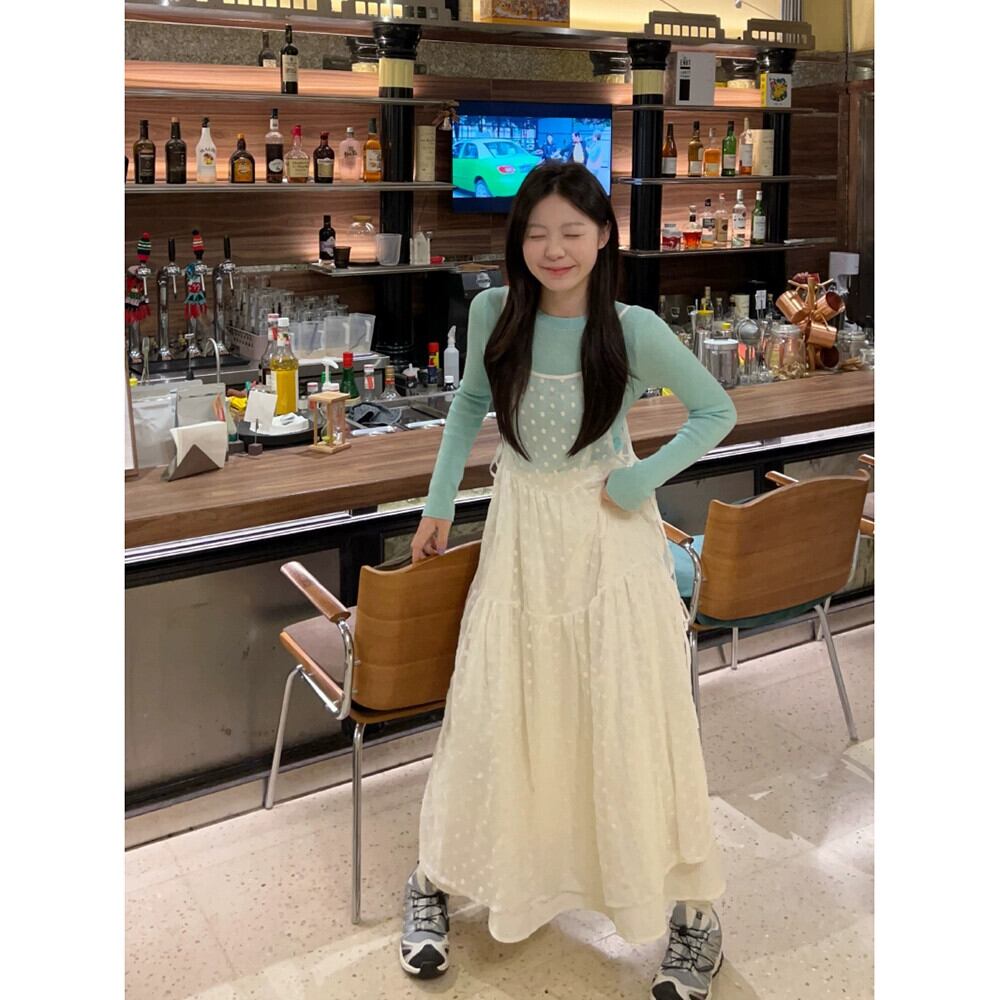 春のミントグリーンTシャツに花柄サスペンダーメッシュワンピースとスカートを重ねた優しいスタイルのスーツレディース3点セット レッド スプリング 春物 missk97717815050