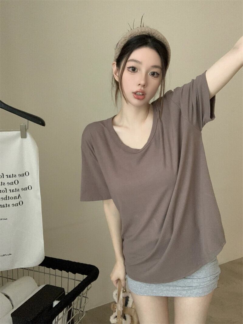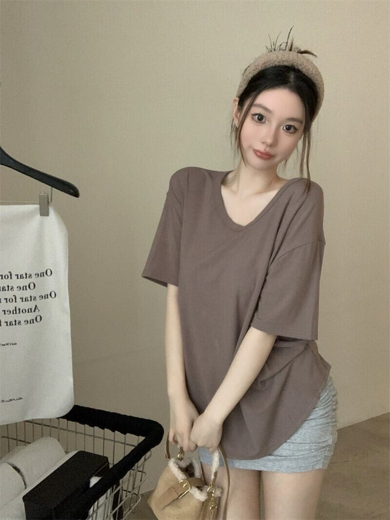 白半袖Tシャツレディース2024年夏新スタイルシックなデザインVネックルーズカジュアルニッチトップ ホワイト サマー 夏物 missk5833196350