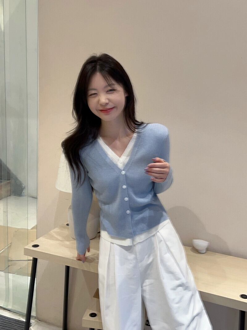 フェイクツーピースグリーンVネックセーターレディース、春デザイン長袖セーターカーディガンシックシックトップ ロング スプリング 春物 missk5300574752