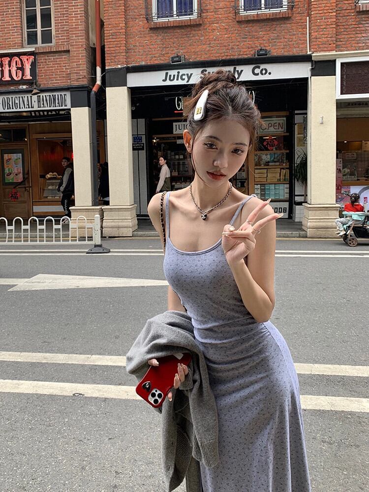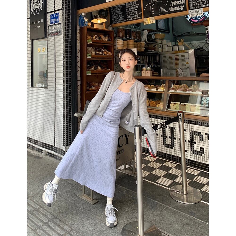 花サスペンダードレスの女性の春 2024 新しいスタイルフレンチ優しいスタイルウエスト痩身 A ラインロングスカート スプリング 春物 花柄 Aライン missk87799729091