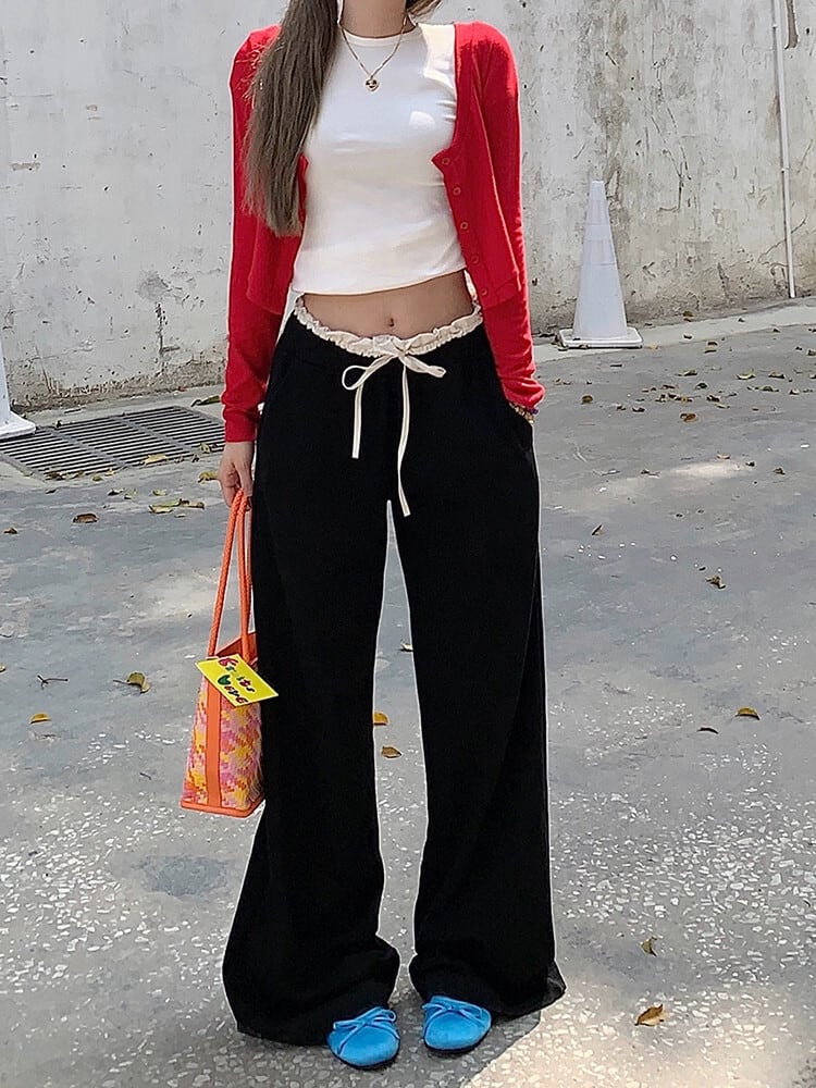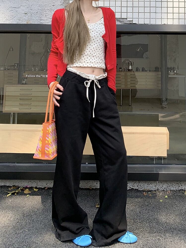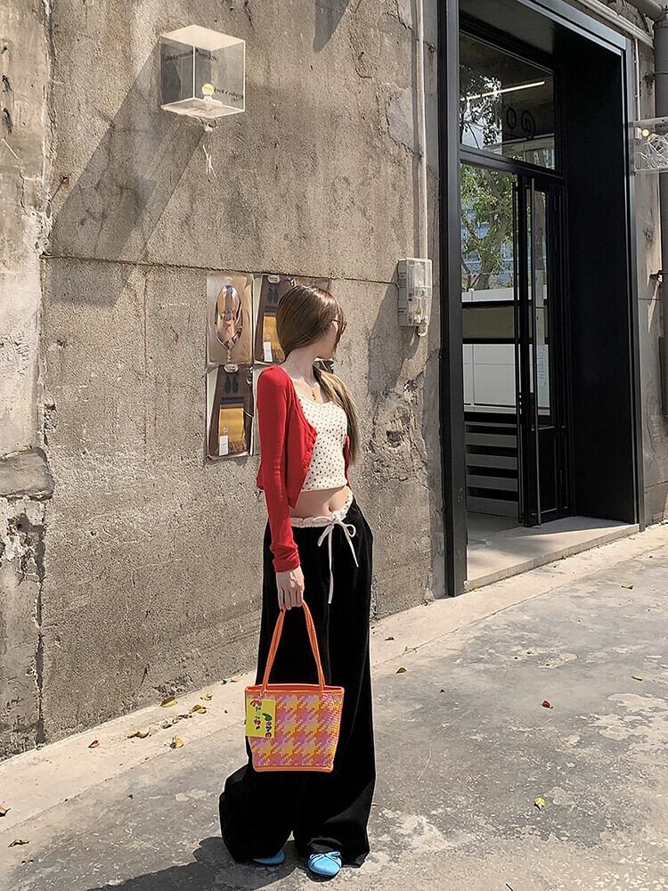 甘辛スーツ レディース 春ショートニットカーディガン 花柄レースキャミソール カジュアルワイドパンツ 3点セット 大人ガーリー スウィート キュート スプリング 春物 missk50125083503