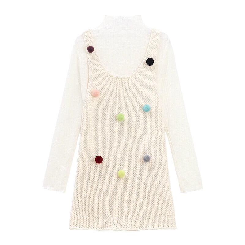 カラフルなファーボールニットベストスカートを重ね着、ハーフタートルネックボトムシャツ、スタイルツーピースセットの春先のスイートスタイルスーツレディース レッド 大人ガーリー スウィート キュート カジュアル スプリング 春物 missk12982940280