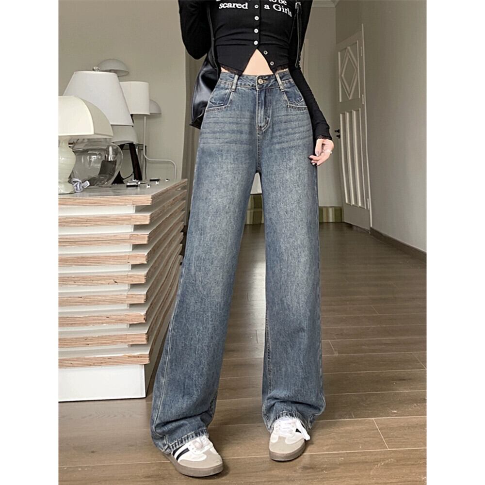 レトロナローワイドレッグジーンズ女性 2024 春の新しいスリムスリムハイウエストストレートフロアレングスパンツ スプリング 春物 missk3180149555