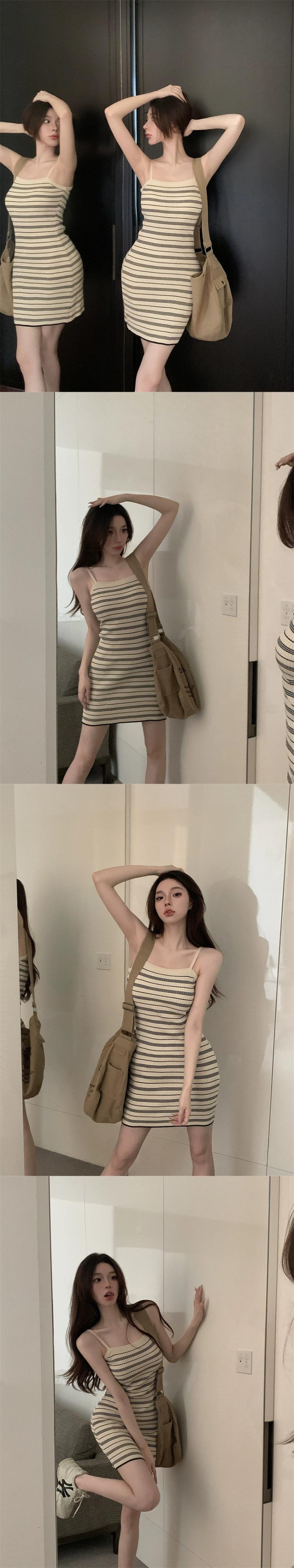 ホットガールストライプサスペンダードレス女性の春 2024 レトロウエスト痩身ヒップスカート A ラインショートスカート スプリング 春物 Aライン missk90963550117