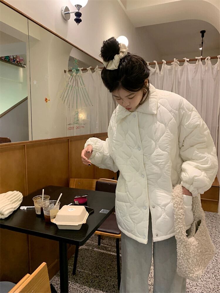 ダイヤモンドラペルコットンコート女性の春 2024 新しいスタイルスモールプラスベルベットラムウール暖かいコットンコートとジャケット スプリング 春物 missk45722563110