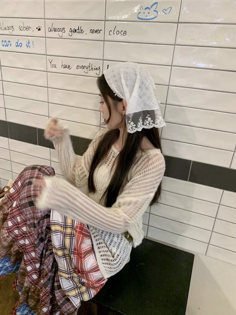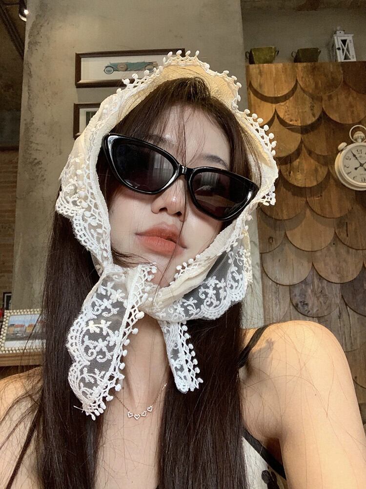 フレンチ&レースのトライアングルスカーフ、雰囲気のあるシルクスカーフ、花柄のヘッドスカーフ、ハイエンドの花柄ベージュの牧歌的なスタイルのストリーマートレンド missk46727145828