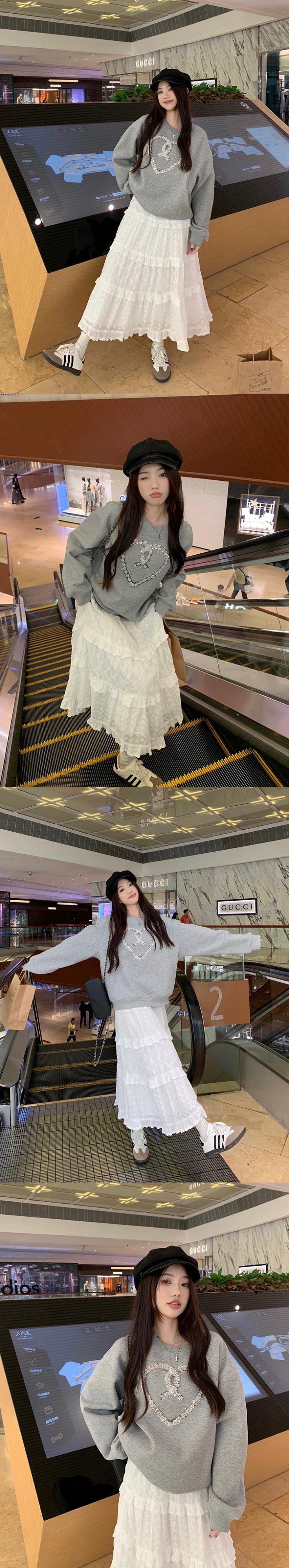 色:紺のセーター,フラワーグレーセーター,白いレースのドレス