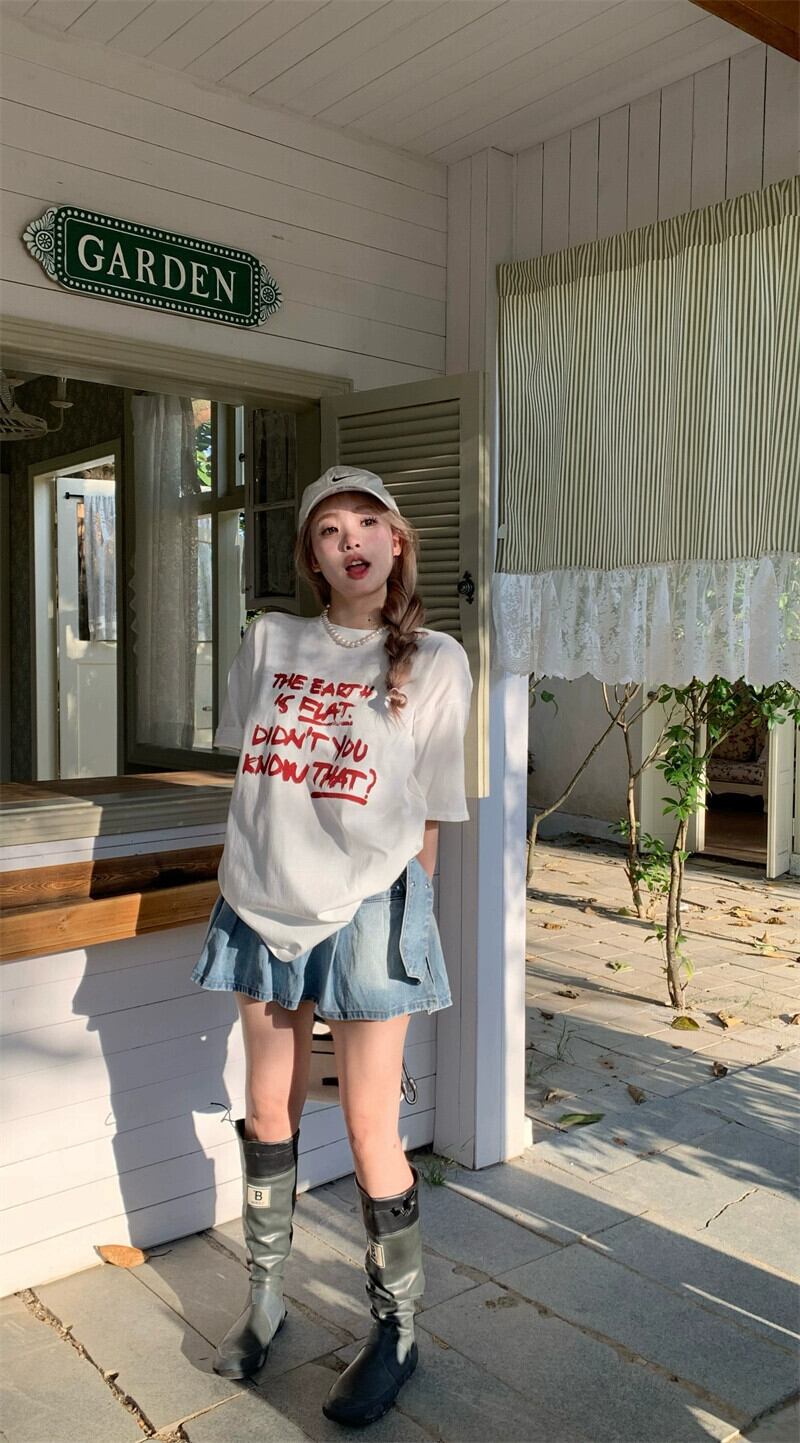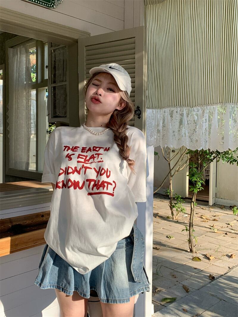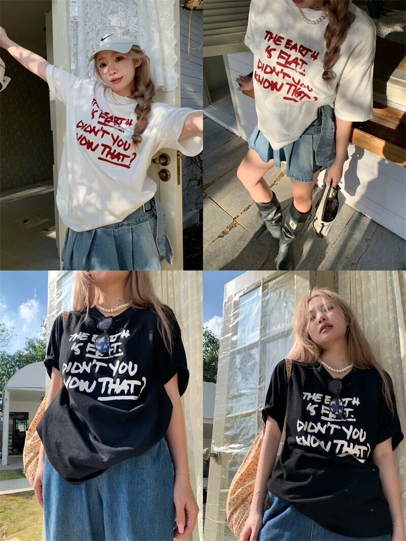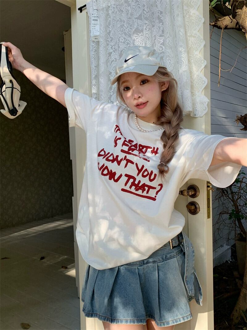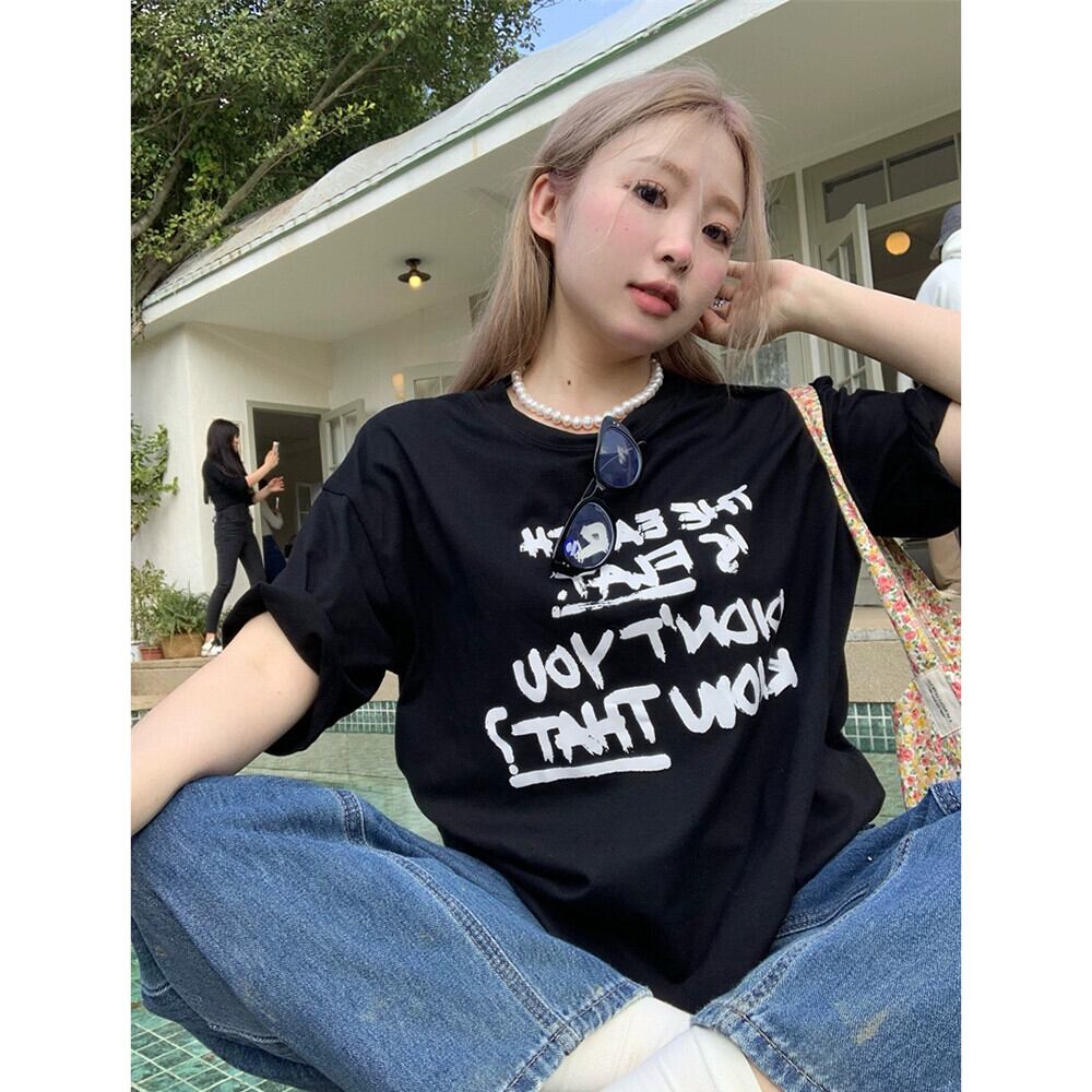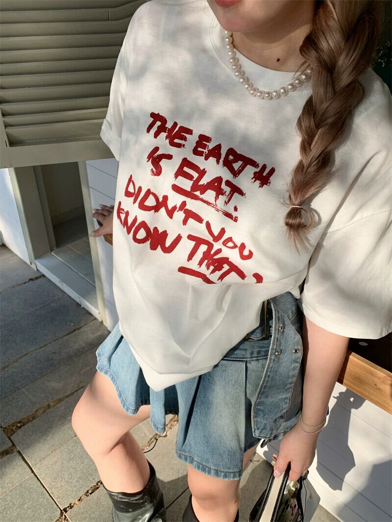 ホワイトコットン半袖 Tシャツ女性春アメリカンデザインレタープリントルーズカジュアルラウンドネックシックなトップ スプリング 春物 Oネック missk16209495051