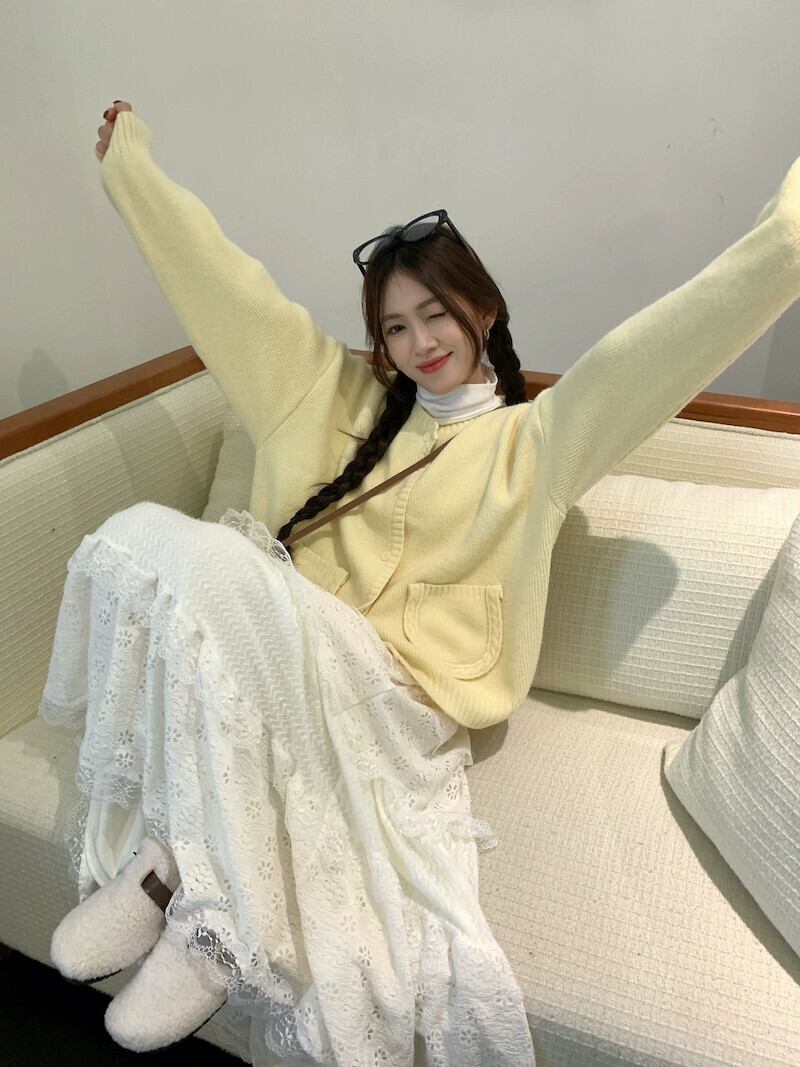 甘い長袖ニットカーディガンロングレースケーキスカート女性春と秋の 2024 新しいファッションスーツ 大人ガーリー スウィート キュート カジュアル スプリング 春物 オータム 秋物 missk26617873318