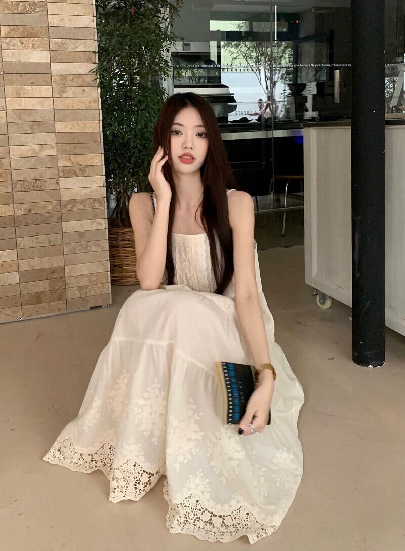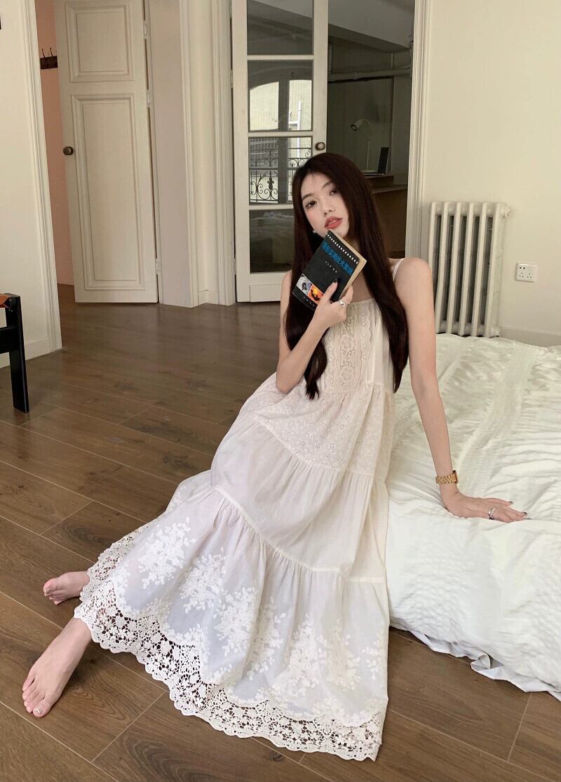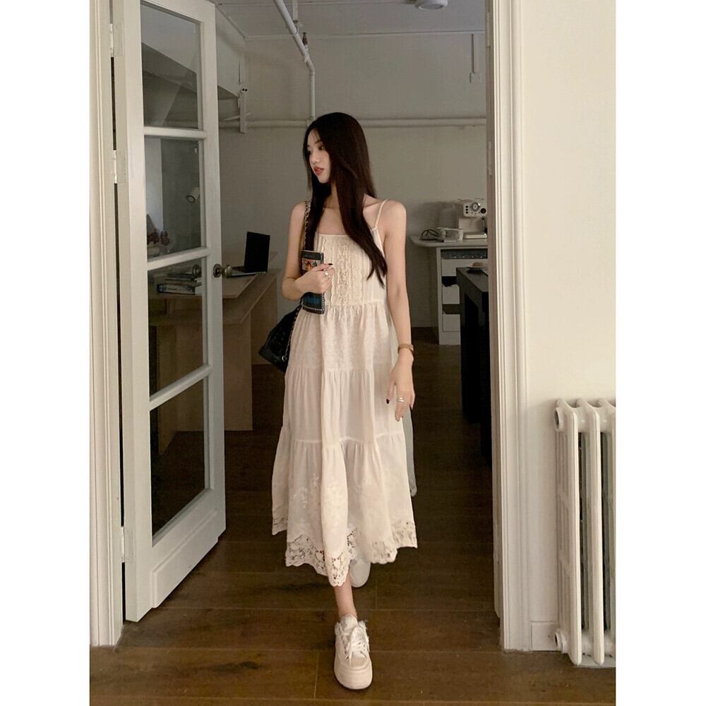 フランス製の頑丈なレースのサスペンダードレスの女性、春の気質、ハイエンドの重ね着、スリムな海辺の休暇のロングスカート スプリング 春物 missk12439944405