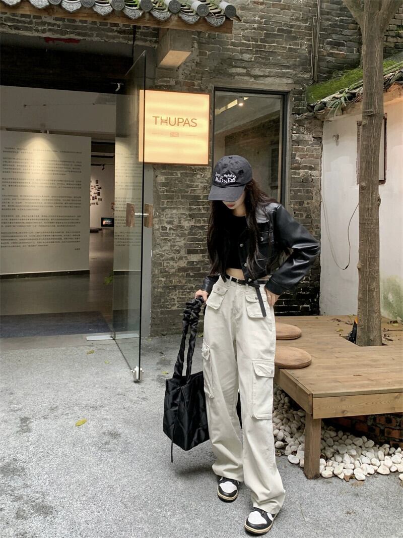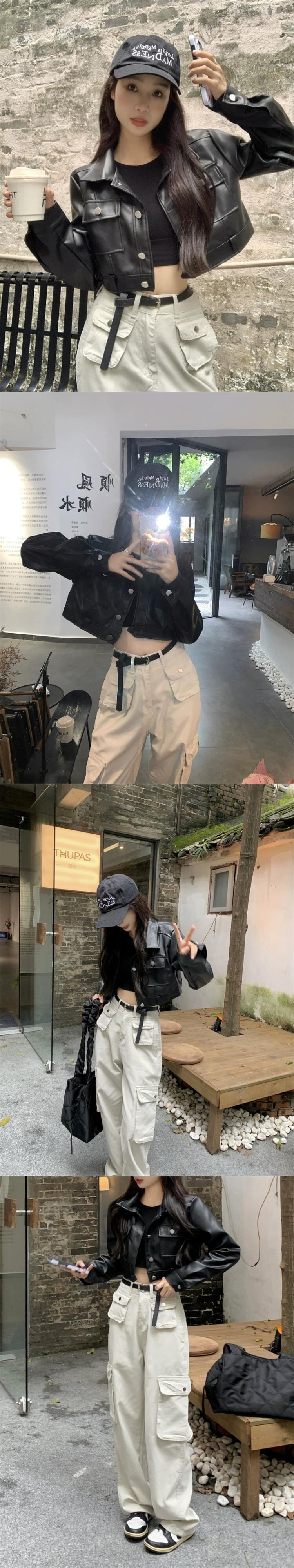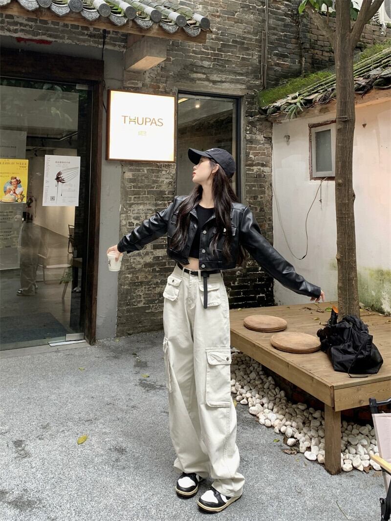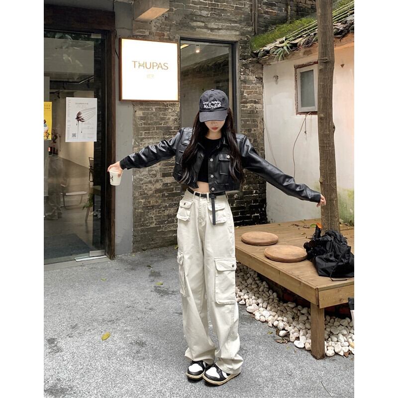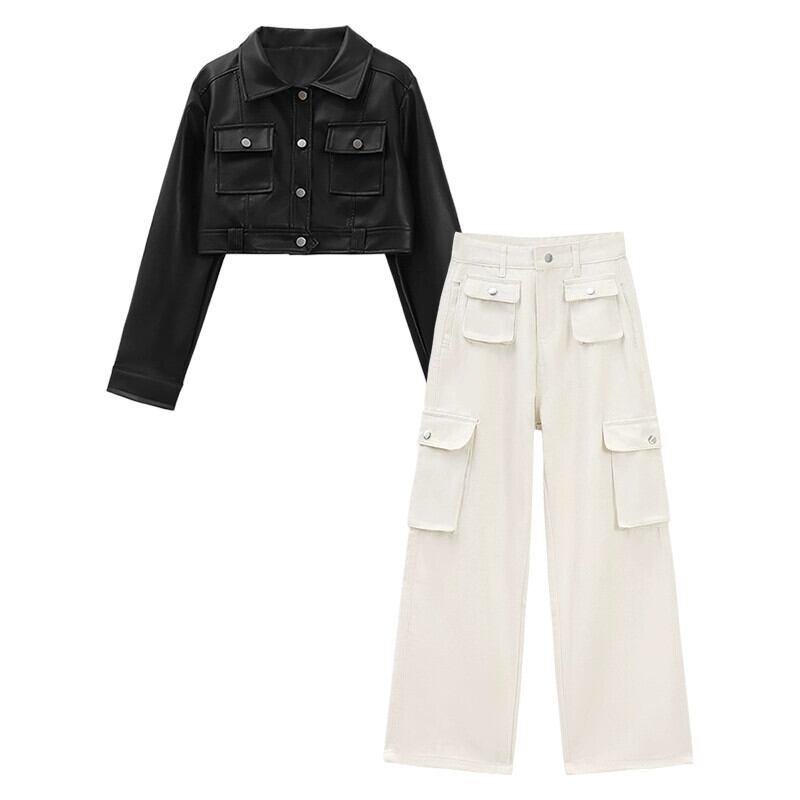 ショートライダースジャケット、レザージャケット、オーバーオール、ワイドレッグパンツ、デザイナーレディース2024年春新作ファッション2点セット スプリング 春物 missk83569084646