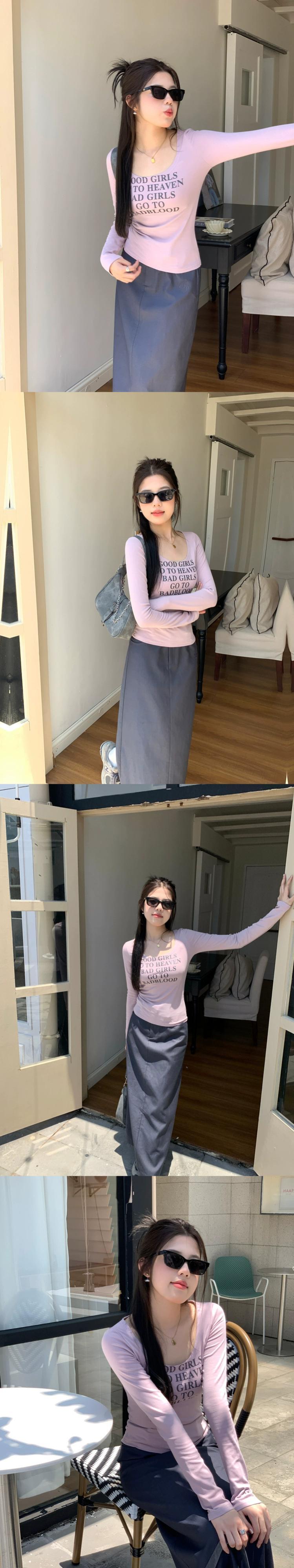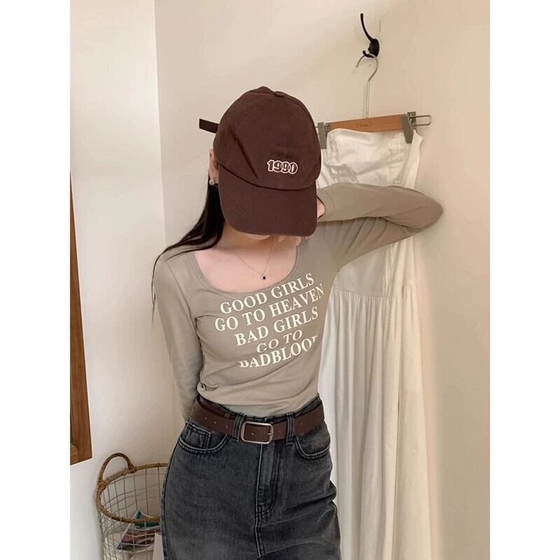 春バージョン 2024 新スタイルファッションスリムラウンドネックレタープリント長袖 T シャツ女子学生トレンド ロング スプリング 春物 Oネック Tシャツ missk92254688890