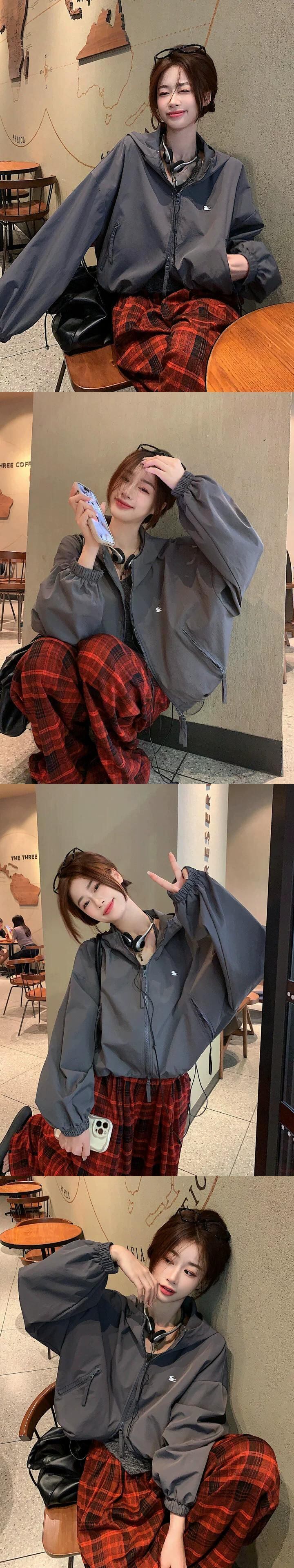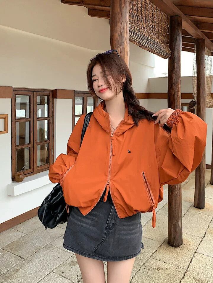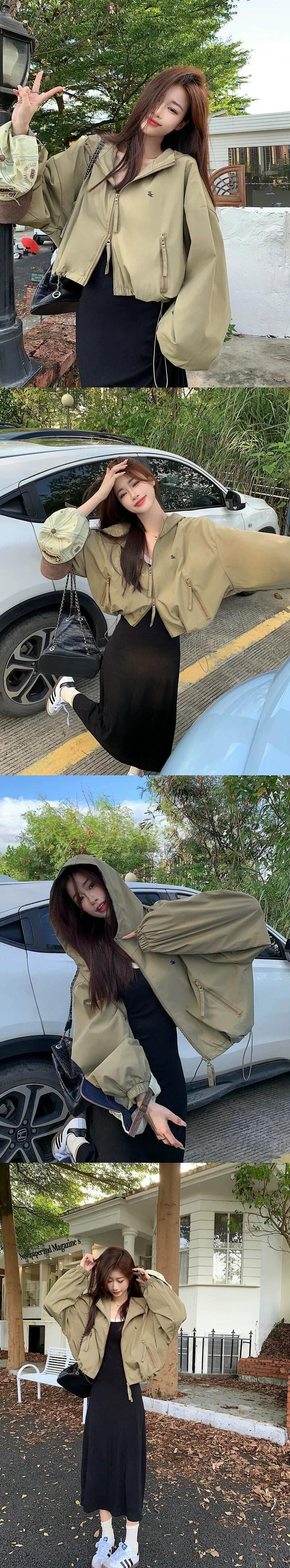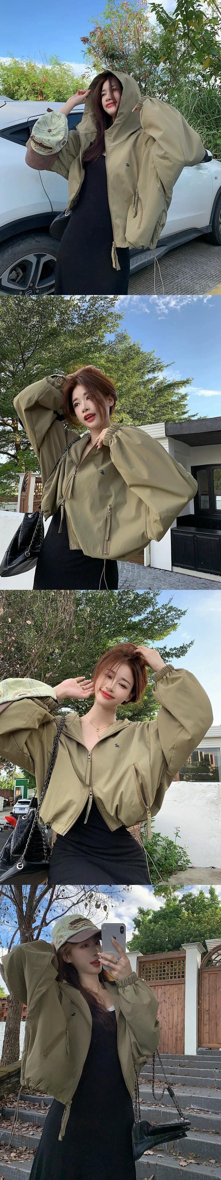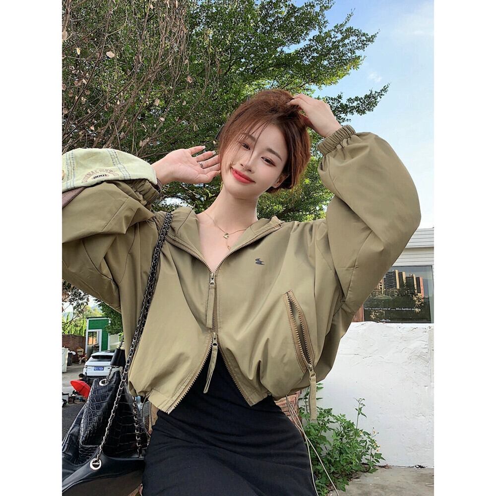 メイラード ショート フード付きジャケット レディース 春 ドローストリング ダブル ジッパー トップ ルーズ ジャケット ジャケット スプリング 春物 missk63537431480