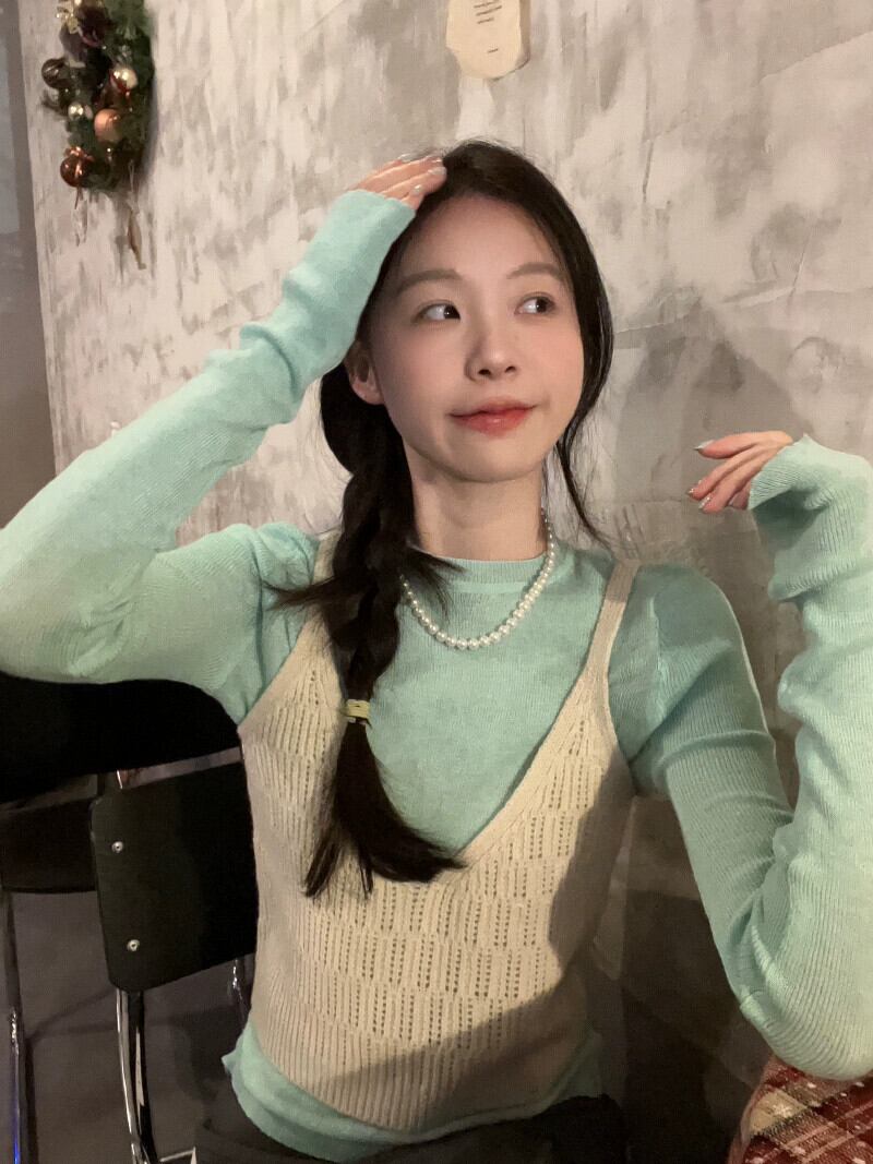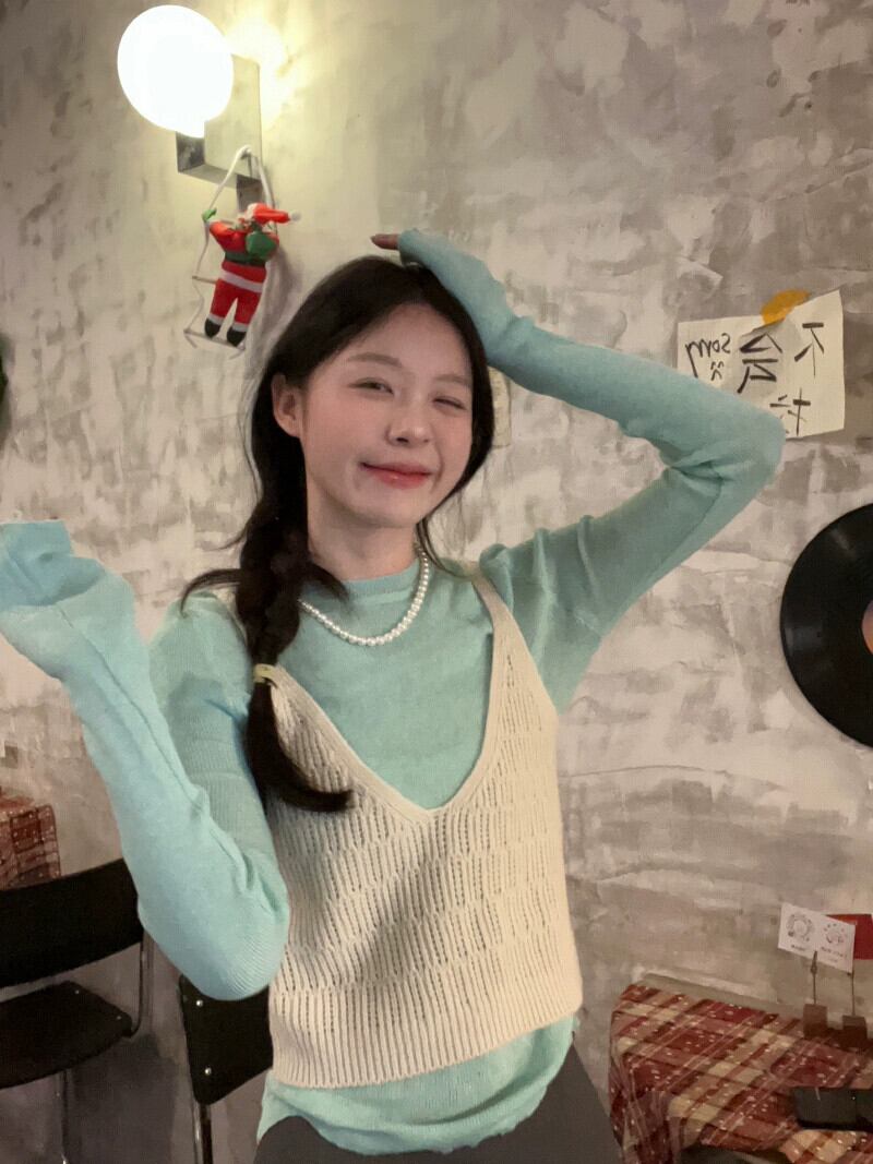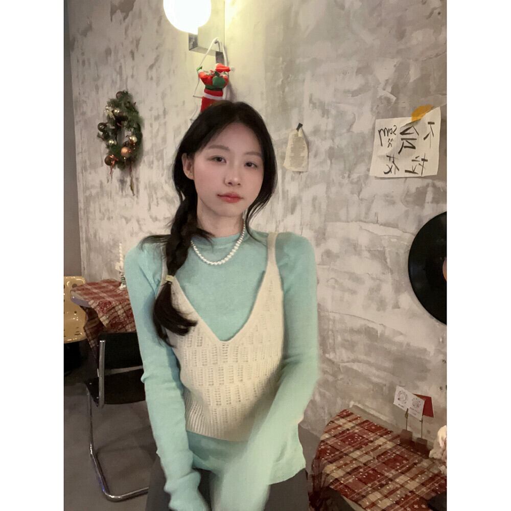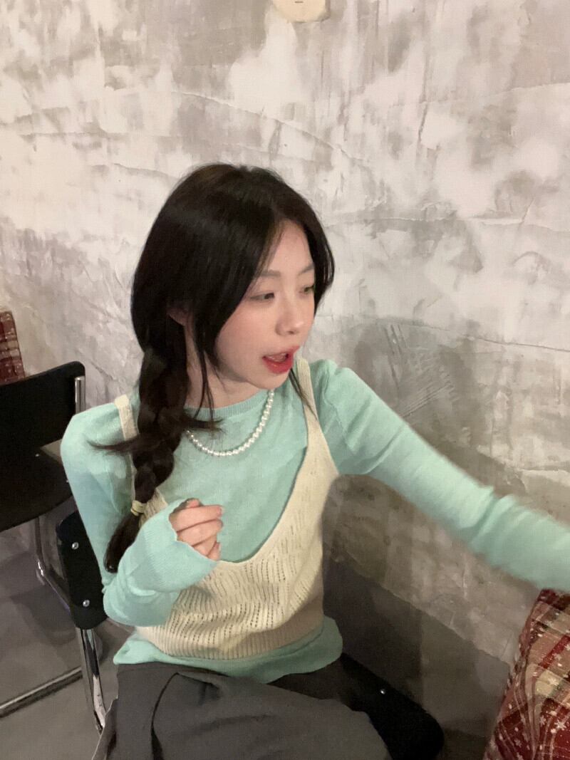 ジェントルスーツ レディース 春 ミントグリーン ボトシャツ 重ね着 ショートニットベスト セーターベスト 年齢軽減 2点セット レッド スプリング 春物 missk23067869165