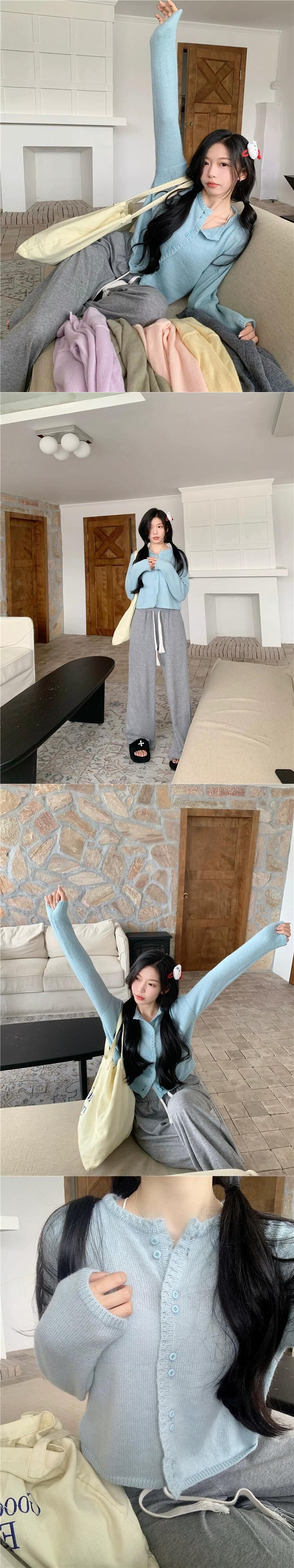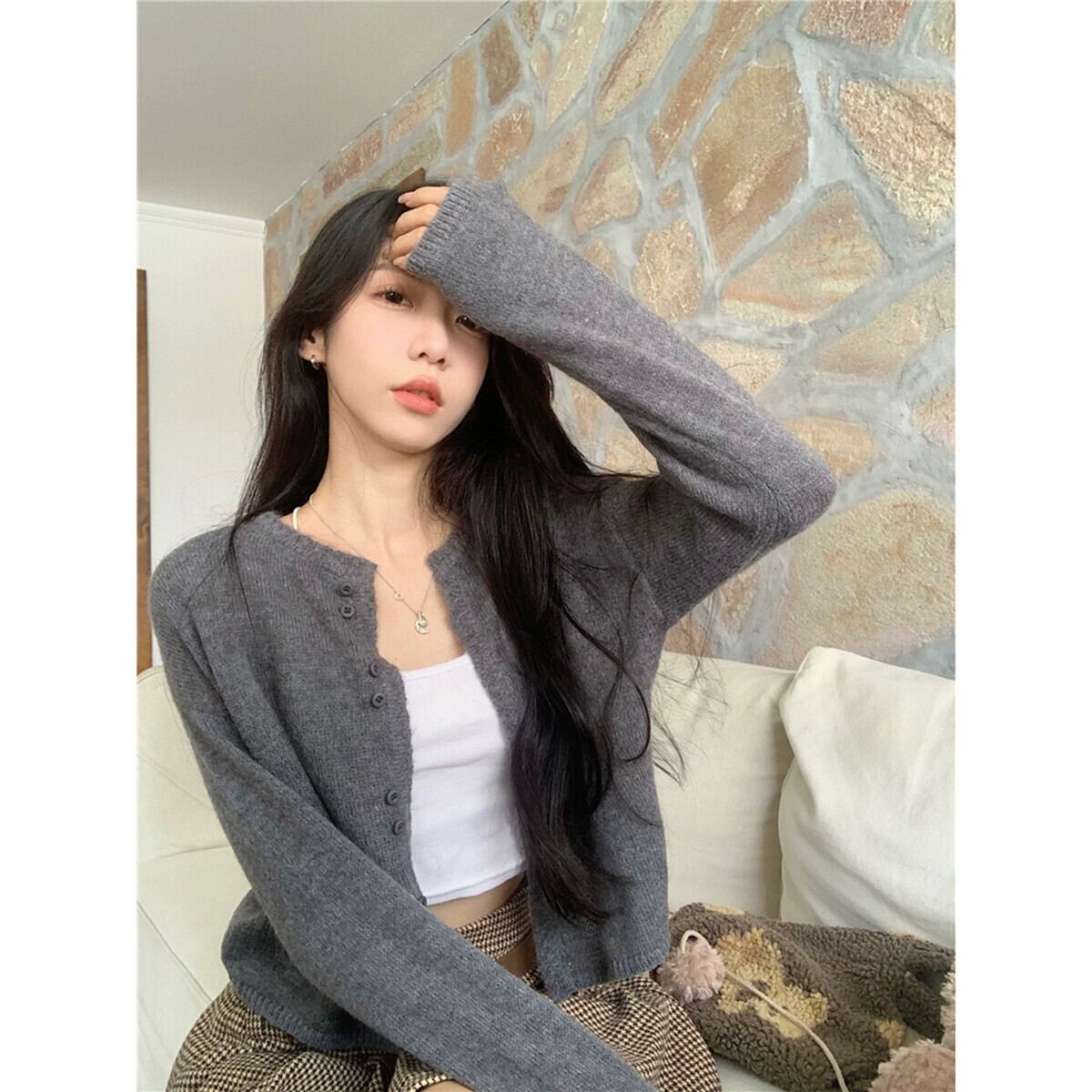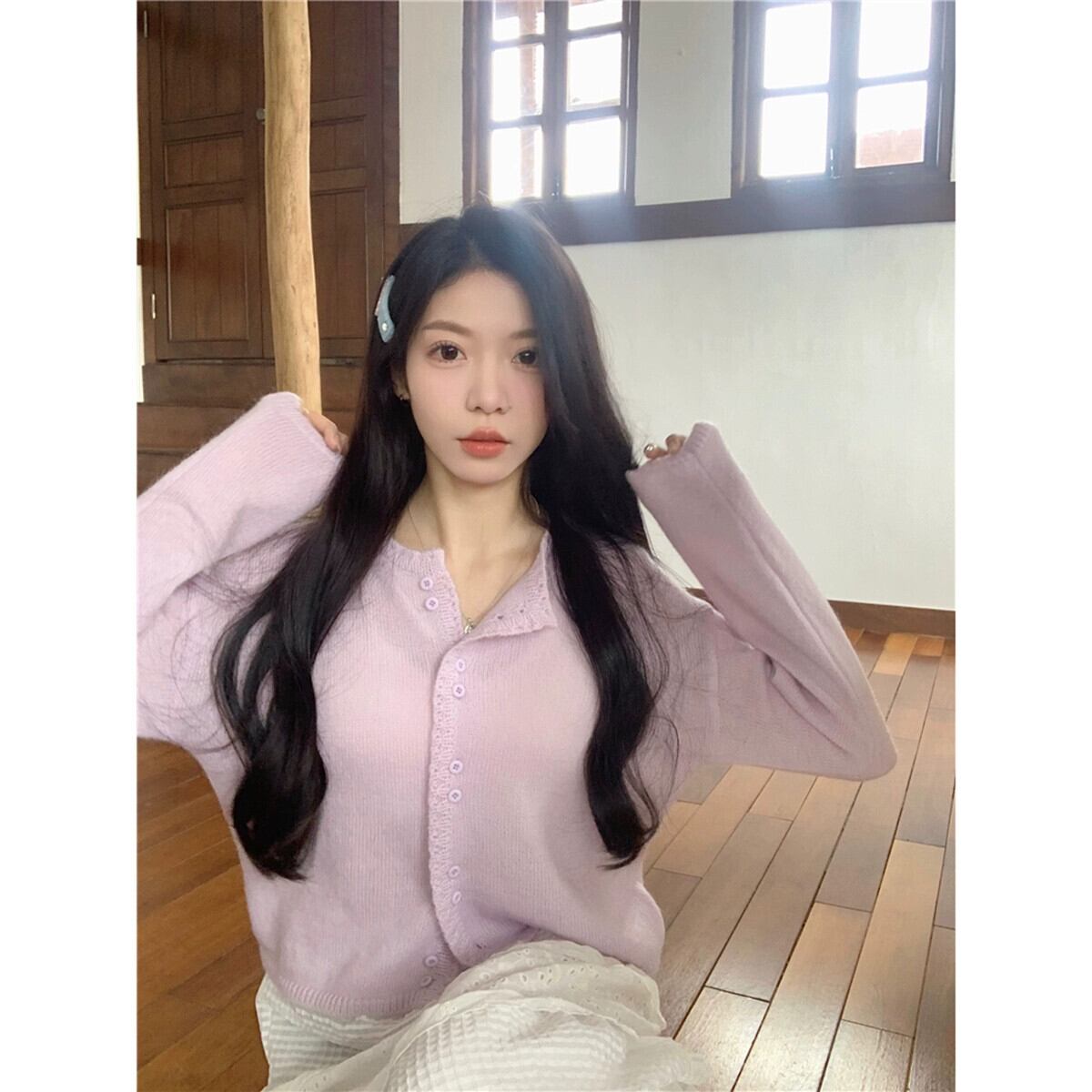 モヘア長袖セーター女性の 2024 年春の新しい優しいスタイルのデザインソフトでワックス状のショート アウター カーディガン ロング スプリング 春物 missk49639471876