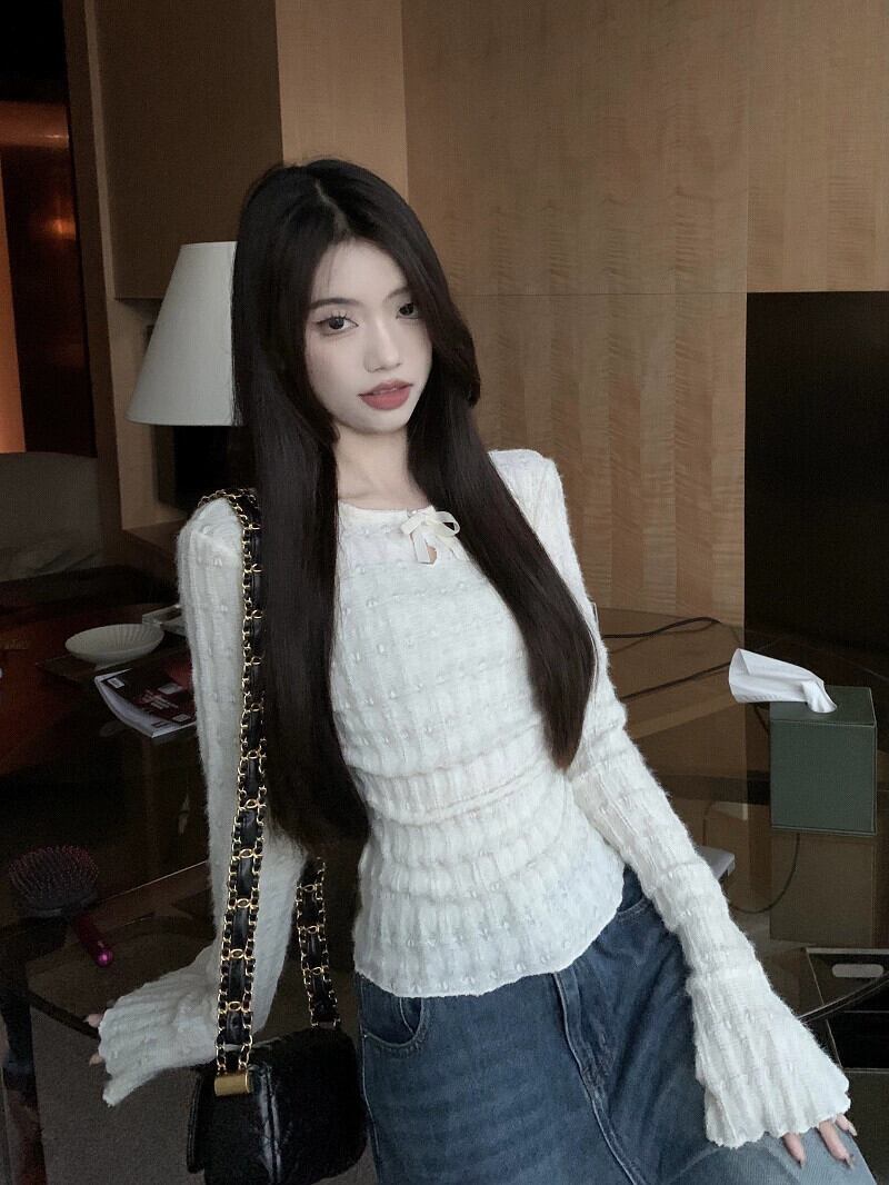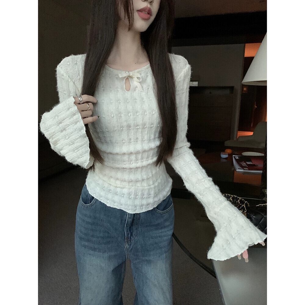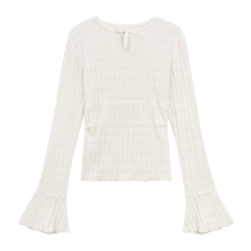 フレンチレース底シャツ女性 2024 春の新スタイル eign スタイルハイエンドトランペットスリーブスリムトップ美しい小さなシャツ スプリング 春物 missk96890516626