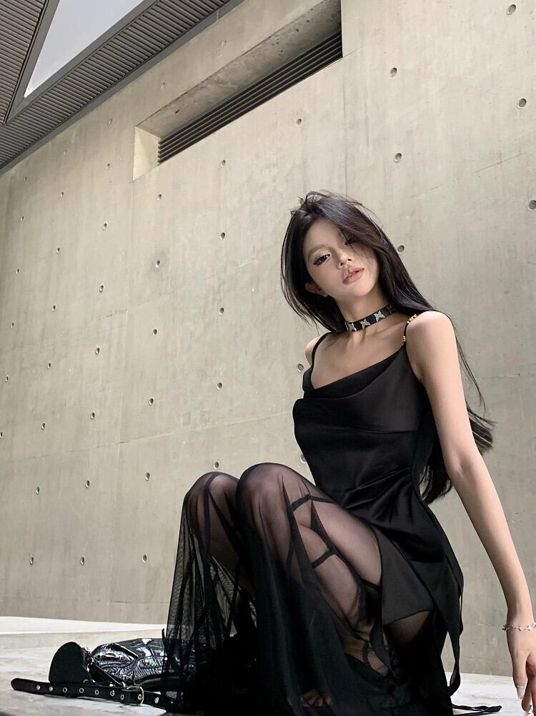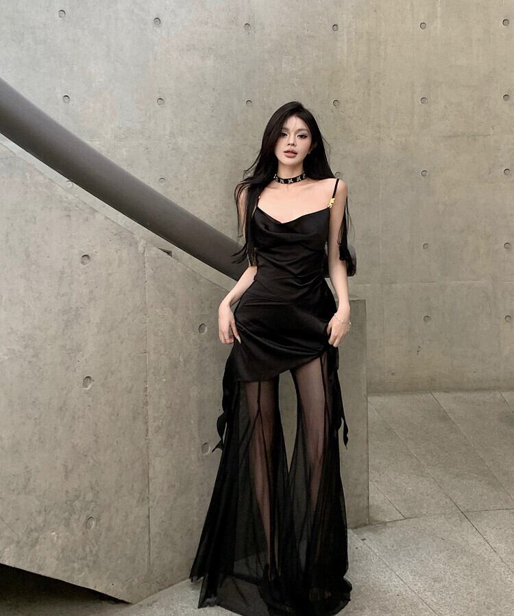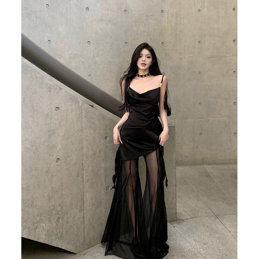 ホットデザイン不規則なサスペンダートップメッシュ通気性ワイドレッグパンツ女性の春の新しいファッションツーピースセット スプリング 春物 missk57294701245