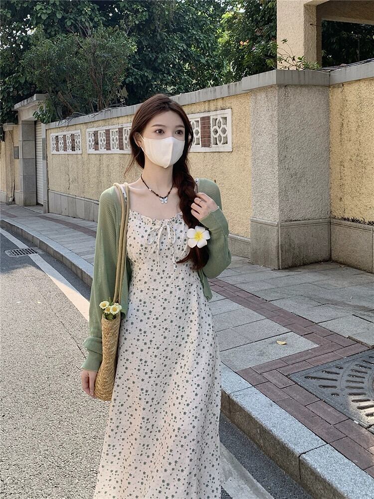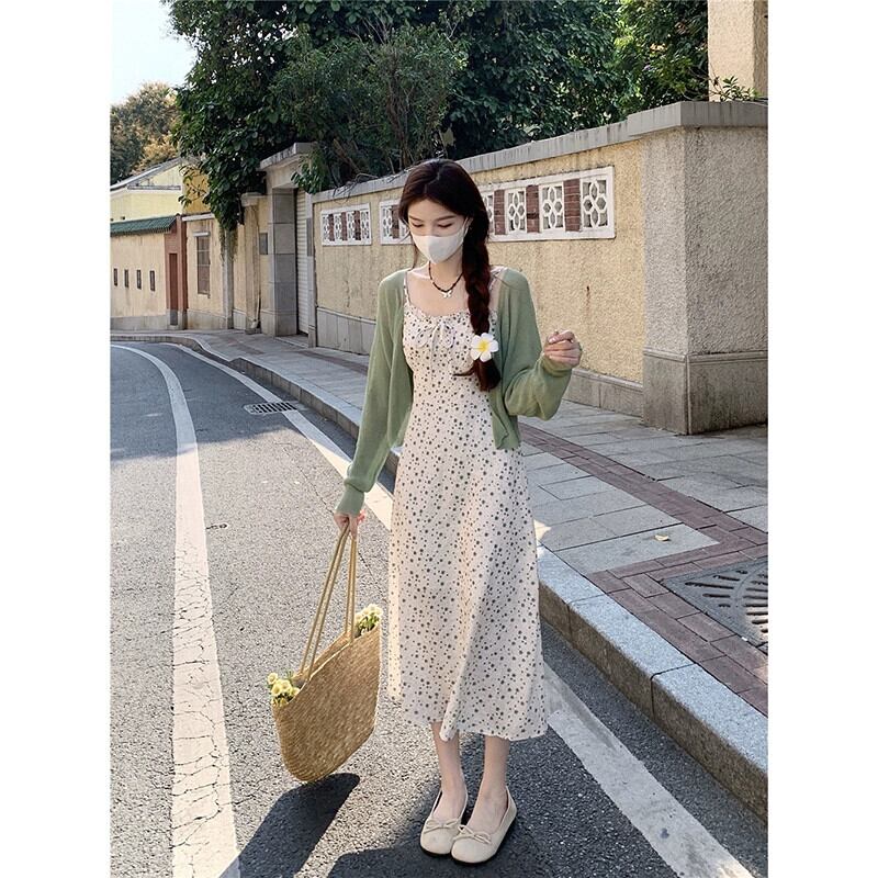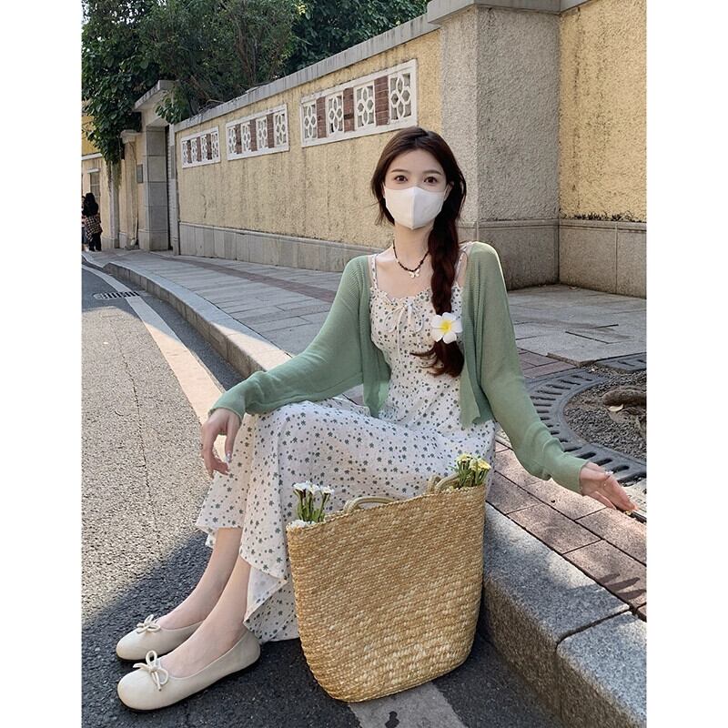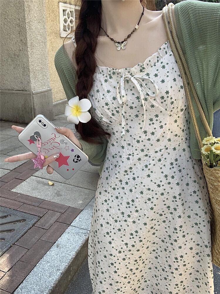 小さな新鮮な花柄サスペンダードレスの女性の春 2024 新しいスタイル優しいスタイル甘いウエスト痩身ロングスカート 大人ガーリー スウィート キュート カジュアル スプリング 春物 missk92865258519