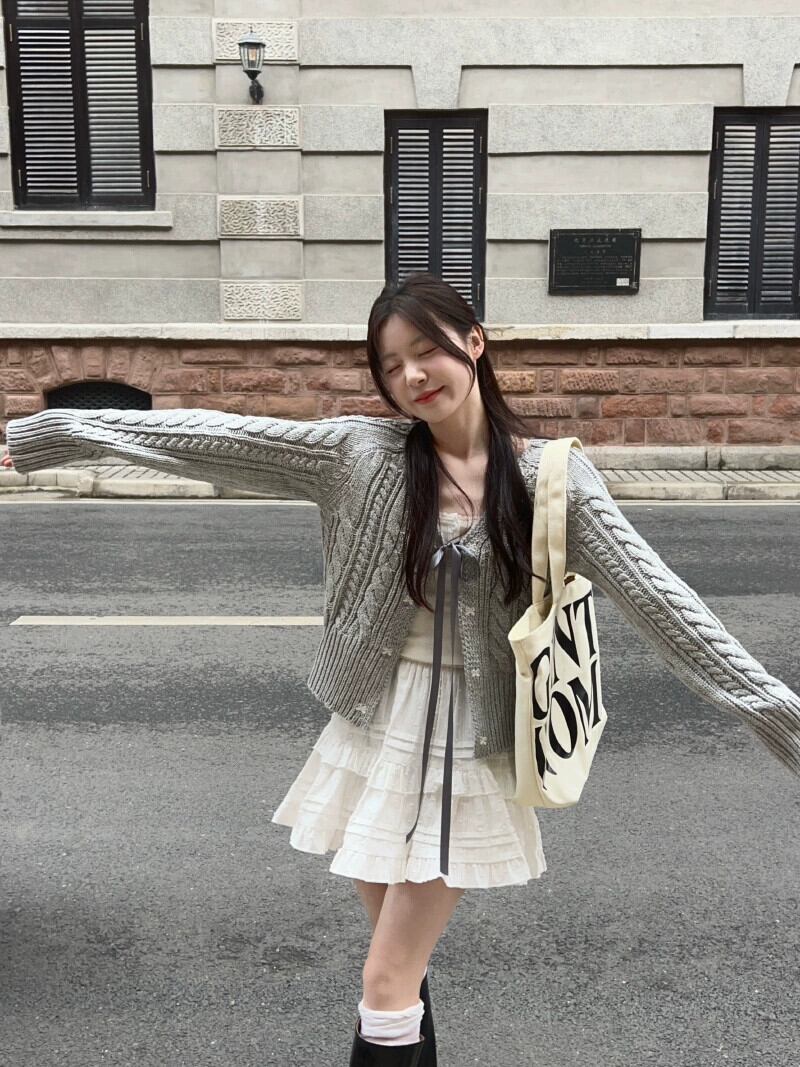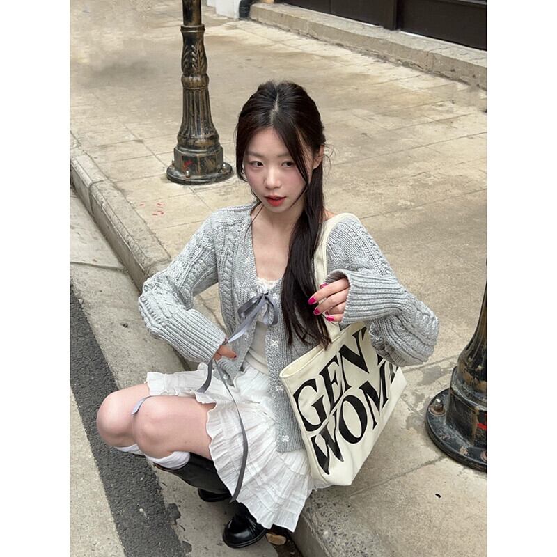 春の優しいスタイルスーツレディース、スタイル、ツイストレース、ニットカーディガン、キャミソール、ケーキスカート、3点セット スプリング 春物 missk51309780360