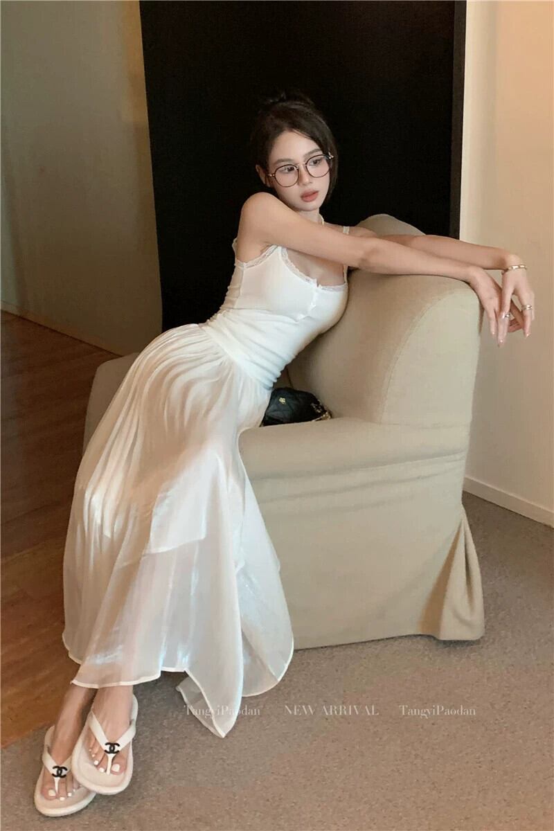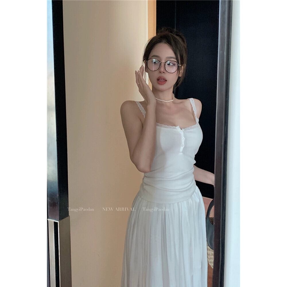 レースステッチインナースリムキャミソール女性春 2024 新しいシルクサテンハイウエストスカートファッションスーツ ハイウェスト スプリング 春物 missk66664633580