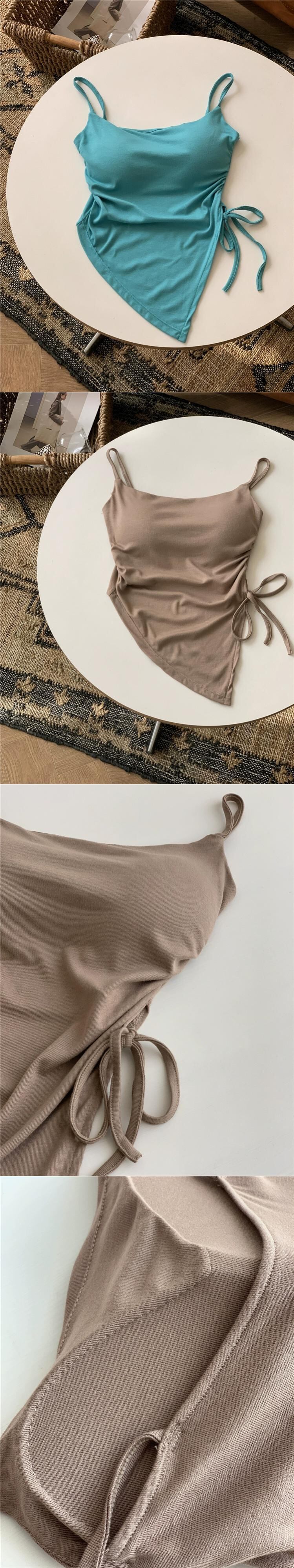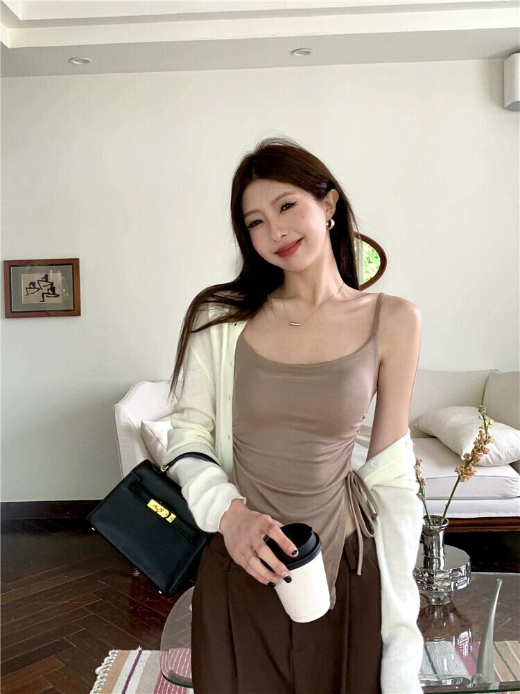 ホットの変則スリットキャミソールレディースインナーウェア春の純情デザイン胸パッド付きアウターウェアボトリングトップ スプリング 春物 ピュア missk92698995876