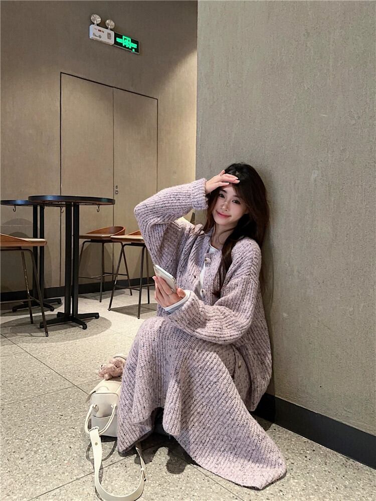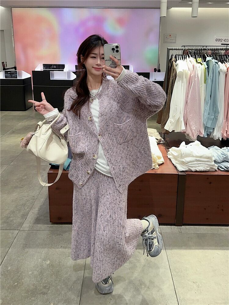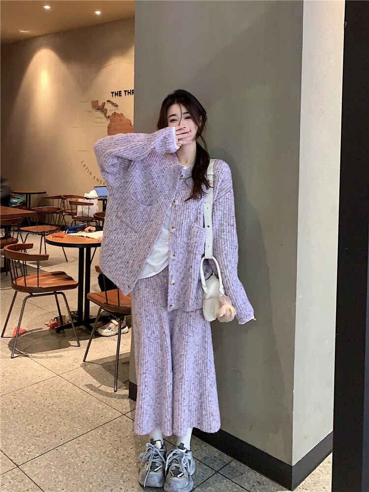 春の怠惰なスタイルのスーツの女性、フレンチスタイル、紫のセータージャケット、ニットフィッシュテールスカート、ファッショナブルなツーピースセット スプリング 春物 パープル missk62930281273