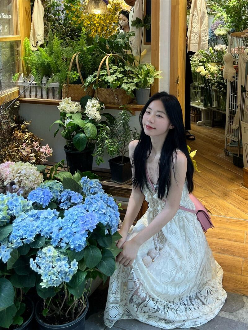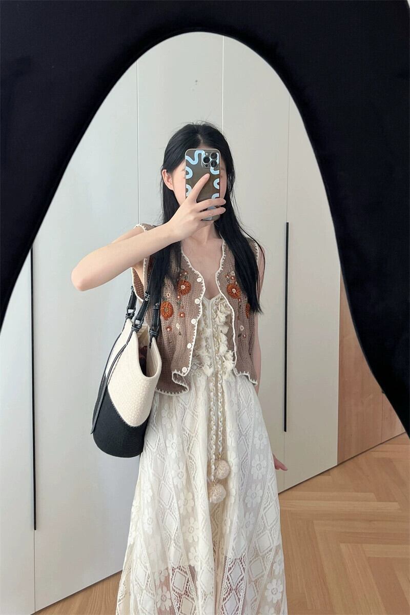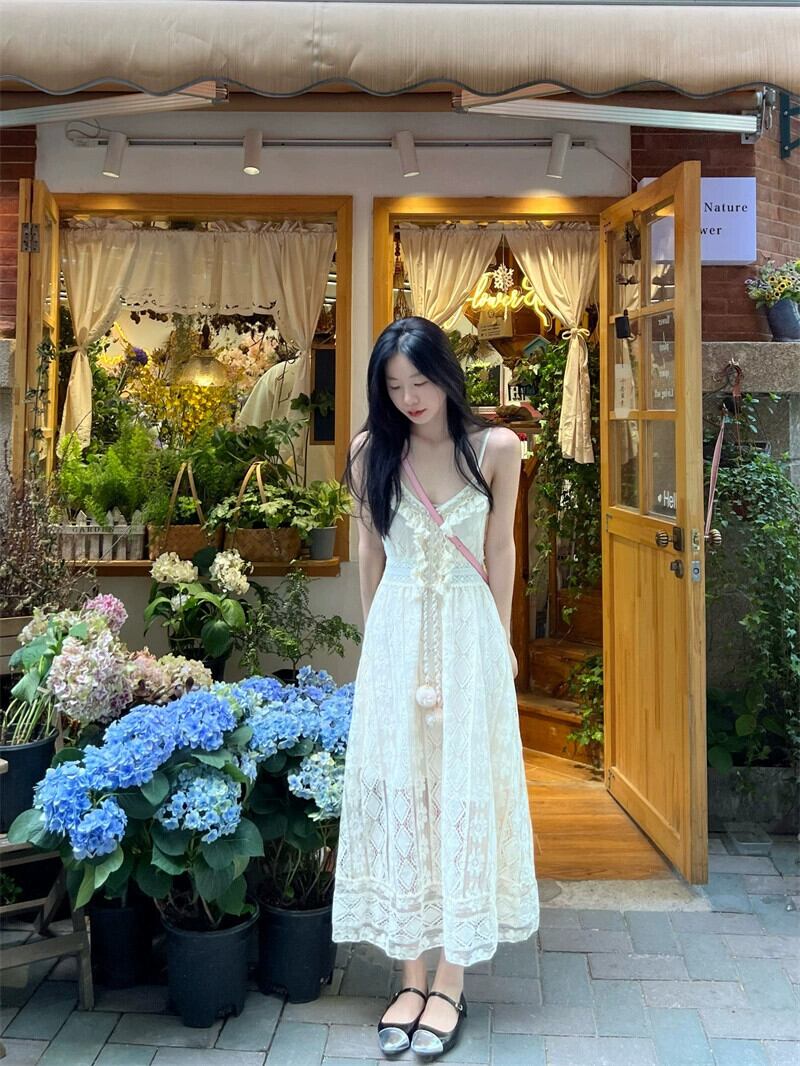 Tel 中空レースサスペンダースカートレディース春の気質エンド甘い妖精ロングスカートフレンチホワイトドレス 大人ガーリー スウィート キュート カジュアル スプリング 春物 missk55867523981