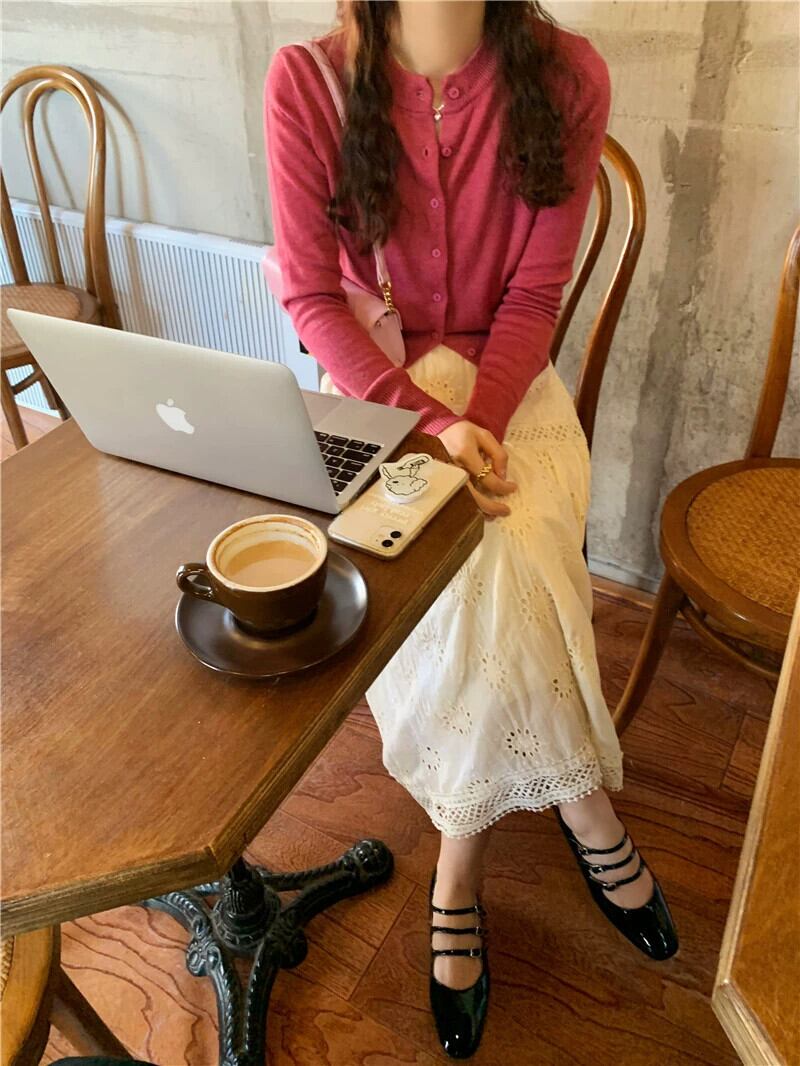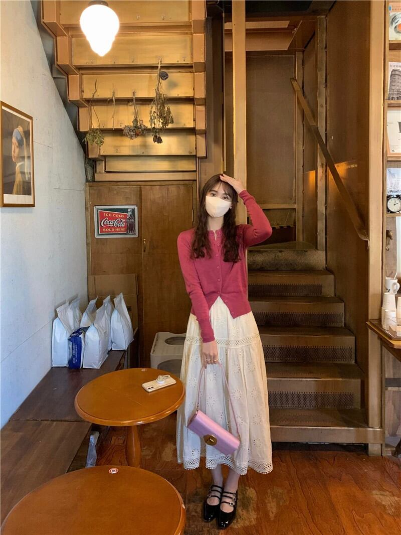 優しいスタイルのスーツレディース春先スタイルローズピンクニットカーディガン中空レーススカート高級2点セット スプリング 春物 missk62087207398